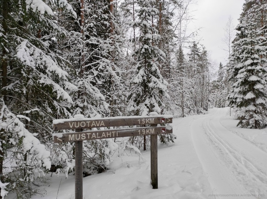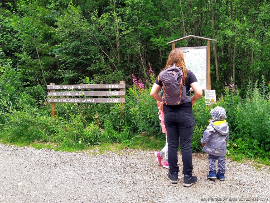 Pituus: Noin 5 km (rengasreitti). Meillä aikoinaan 3-vuotiaskin jaksoi koko reitin kävellä, kun pidettiin laavulla lounastauko, mutta jos haluaa tehdä lyhyemmän retken, voi vaihtoehtoisesti ajaa Vuotavan laavun vieressä olevalle pienelle parkkipaikalle, jolloin kävelyä ei ole kuin joitakin metrejä (en ole siihen koskaan itse ajanut, joten en tiedä, missä kunnossa tie on nykyisin).