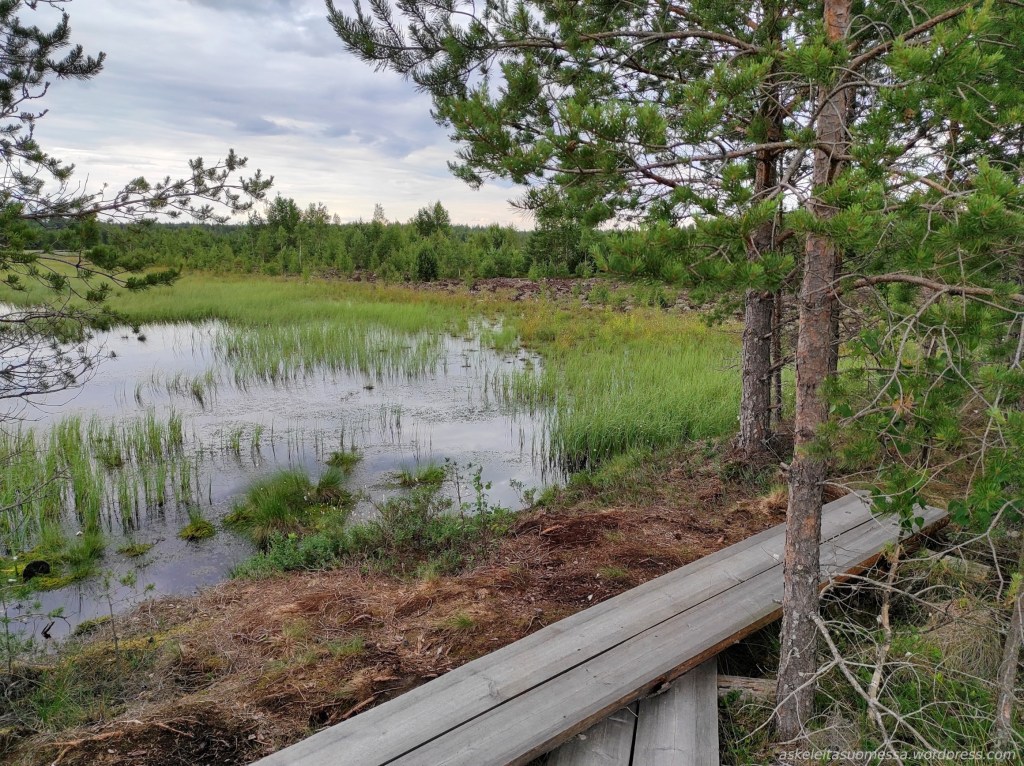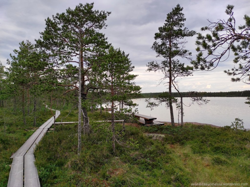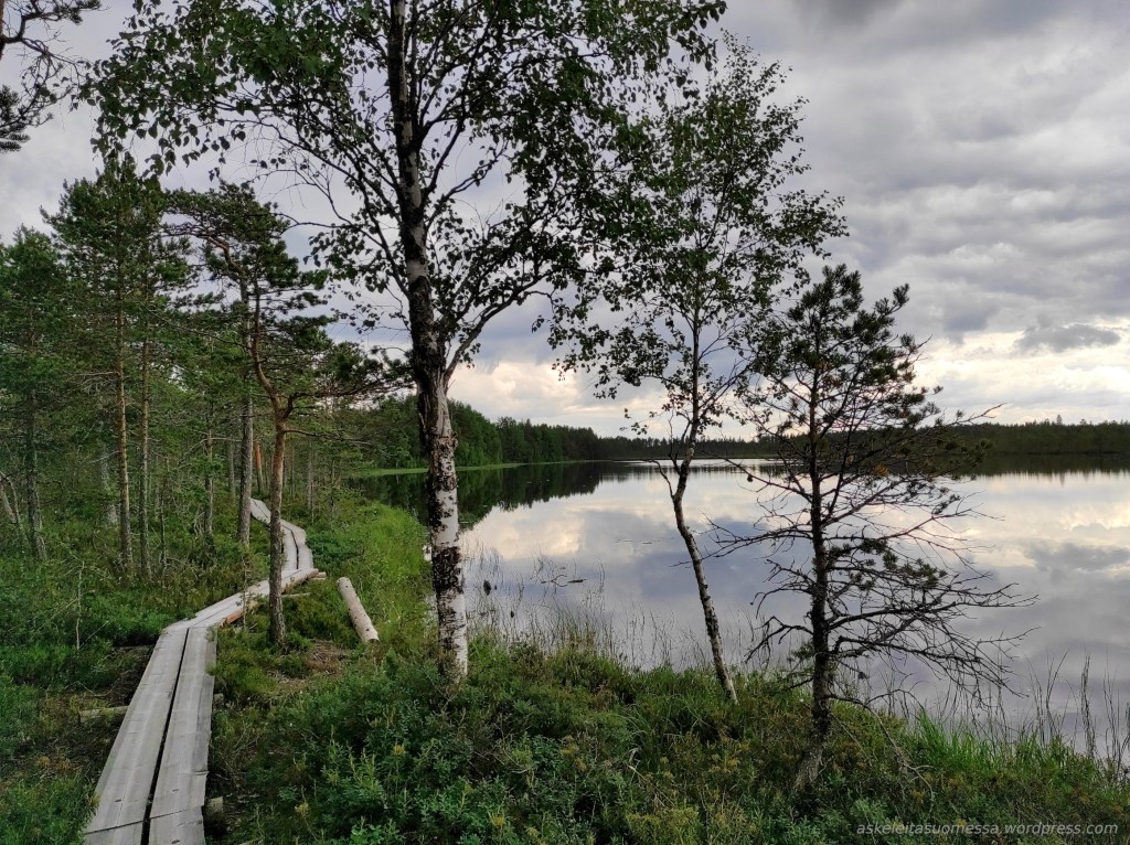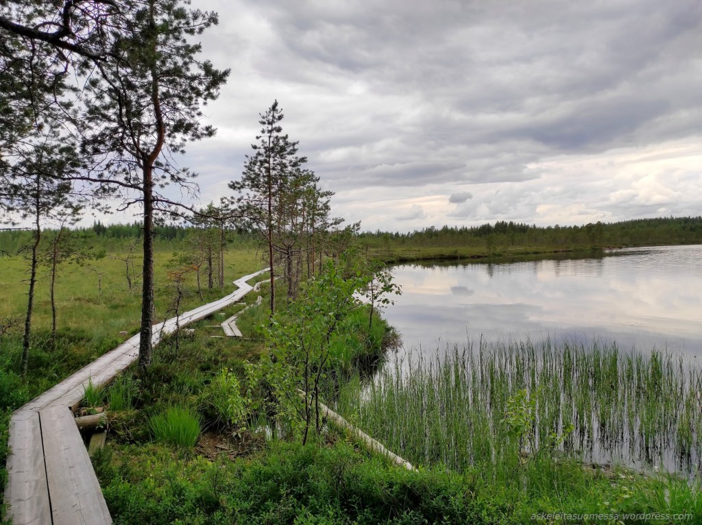 Reitin pituus: Pienen järven ympäri menee reilun kilometrin pituinen luontopolku pitkospuita pitkin. Auton saa pysäköityä aivan uimarannan lähelle.
