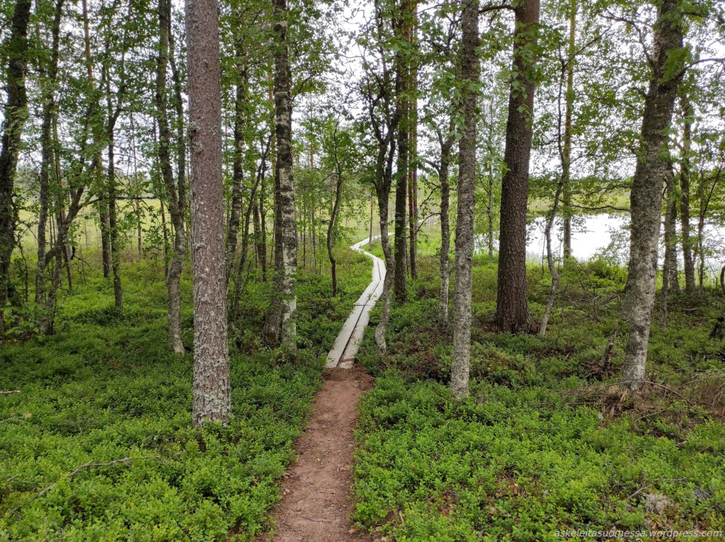 Suolla kiertävä luontopolku on lyhyt, mutta se sopii siis hyvin pienille lapsille. Tämä on myös ihana paikka uimiselle, sillä alueella on yleisessä käytössä oleva tynnyrisauna (minkä mekin juhannuksen kunniaksi lämmitimme). Suosittelut!