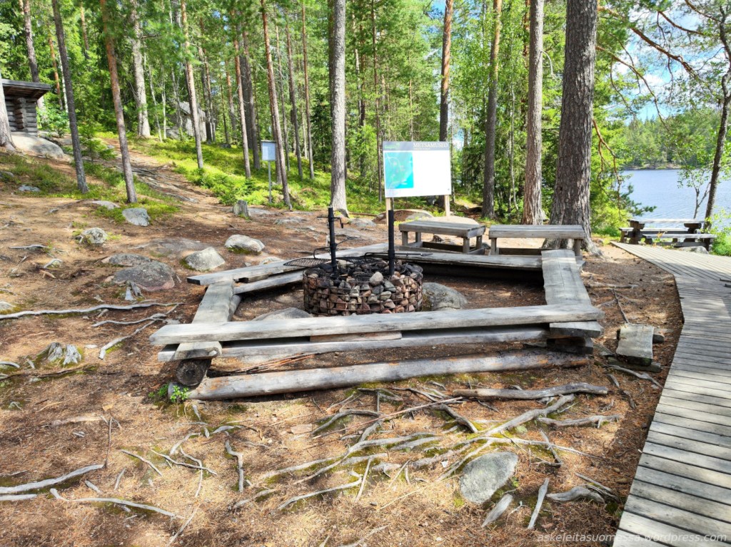 Me kävimme ensin tutustumassa Metsämuseon nähtävyyksiin, minkä vuoksi lähdimme kiertämään luontopolkua myötäpäivään nuotiopaikan vierestä, mutta suoraan parkkipaikalta pääsee siis kiertämään reittiä toiseen suuntaan.