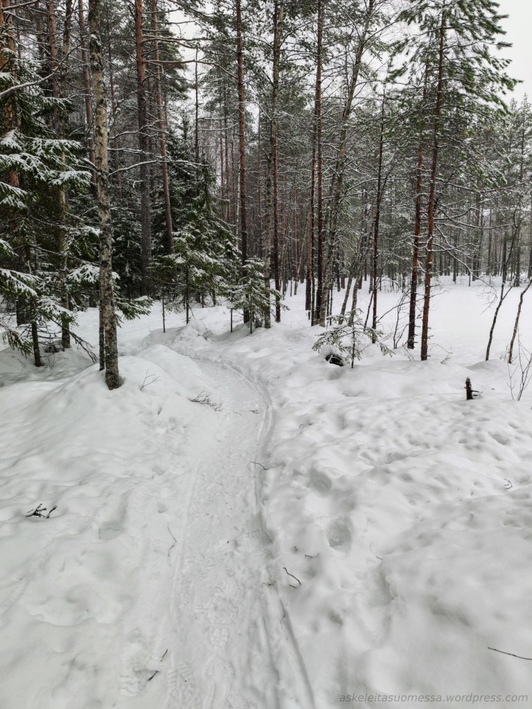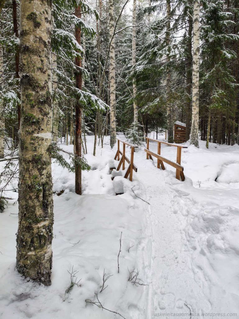 Polku oli tällä hetkellä (28.1.24) hyvin tamppautunut eli lumikengille ei merkityllä reitillä ollut tarvetta, mutta täällä olisi kyllä varmasti mukavaa lumikenkäillä ympäriinsä.