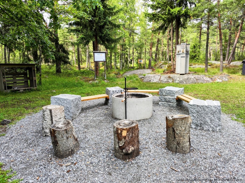 Reitin aluksi on Rotary-puisto, jonka yhteydessä on nuotiopaikka, mutta polttopuita ei näyttänyt olevan.