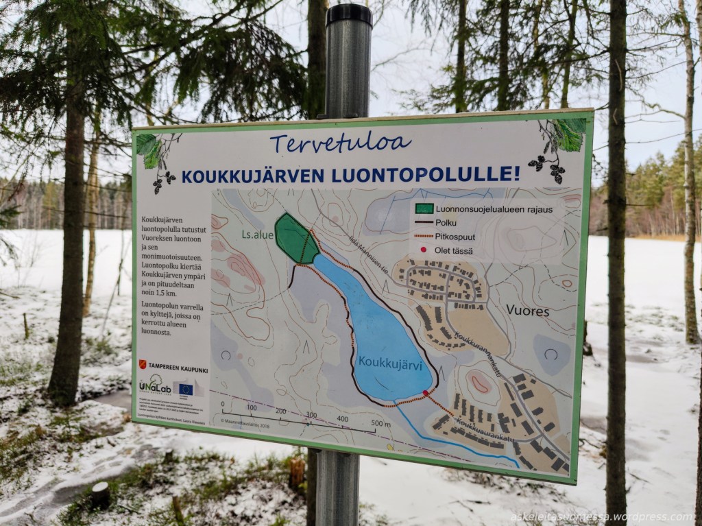 Reitin pituus: Noin 1,5 km. Reitti kiertää järven ympäri eikä kartalle ole tarvetta, mutta halutessaan polkuja voi katsoa esim. trailmap.fi:stä.