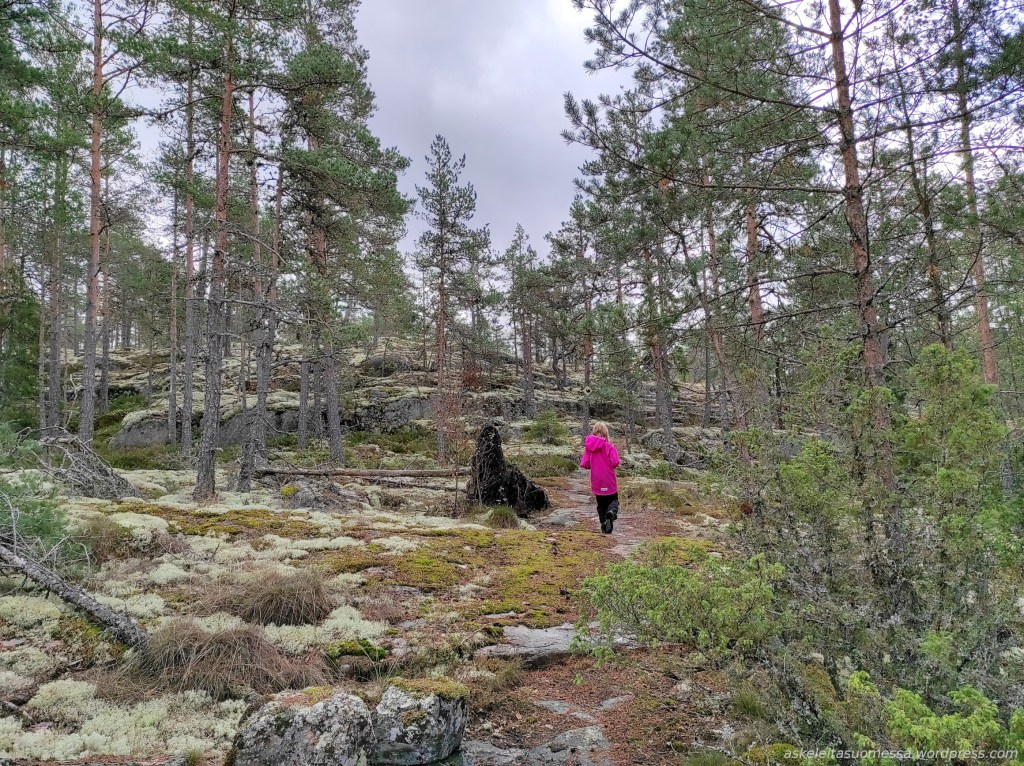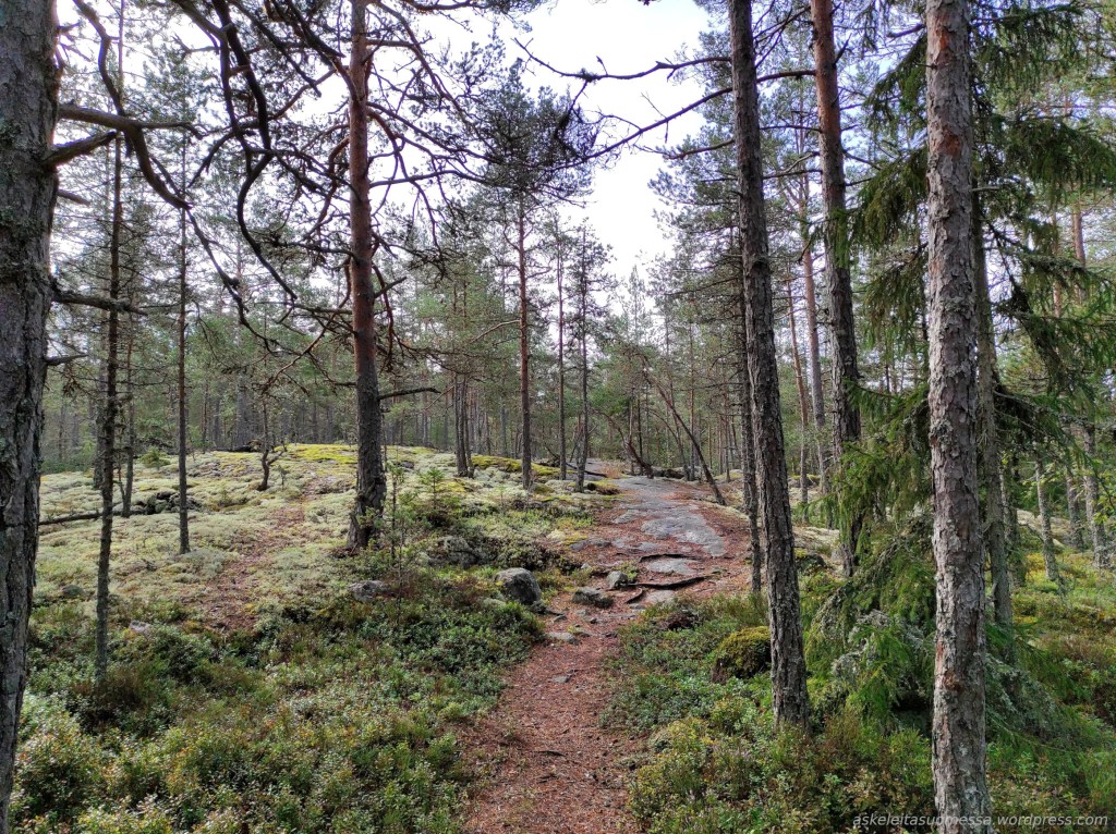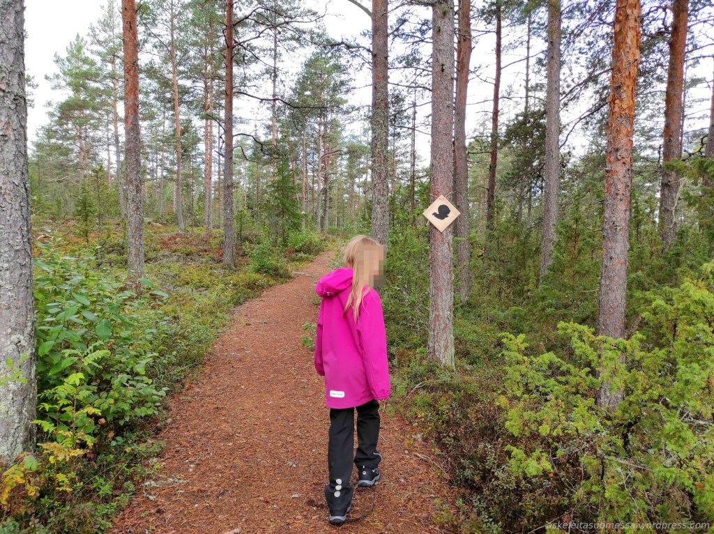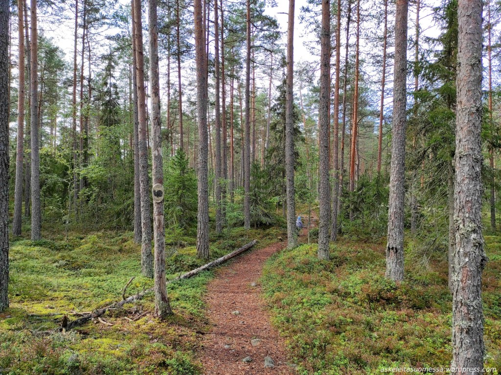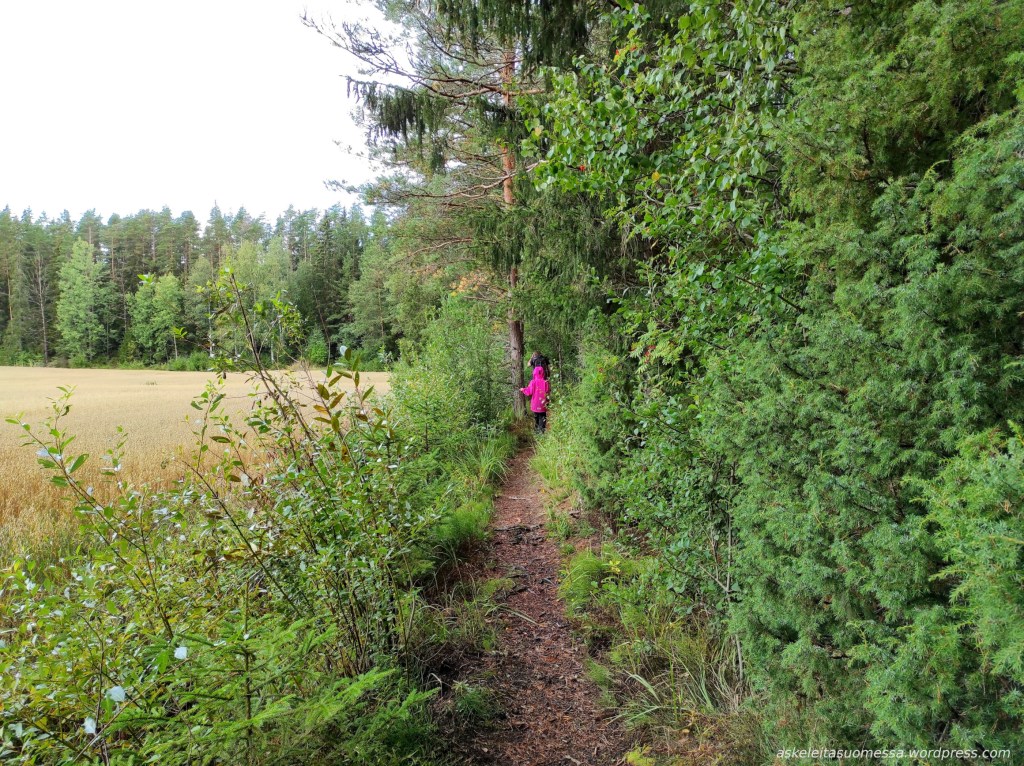 Asfaltti- ja sorateiden jälkeen reitti kääntyy metsätielle, minkä päätyttyä reitti kulkee pienen matkaa metsässä.