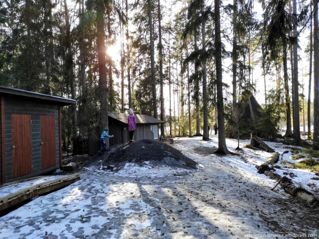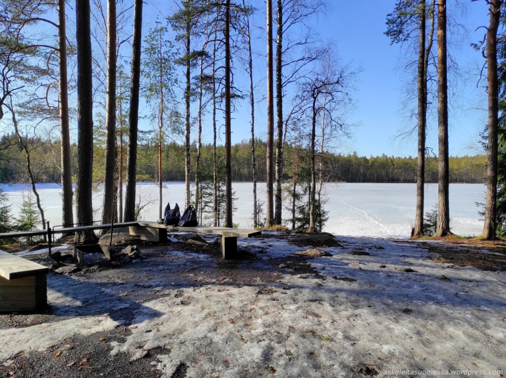 Särkijärven rannalla on nuotiopaikka, jonne on Mielenreitiltä vain lyhyt kävelymatka Suoliojan vartta pitkin. Nuotiopaikkaa ei näy näissä kuvissa, mutta seuraavat kuvat ovat siis aivan nuotiopaikan vierestä.