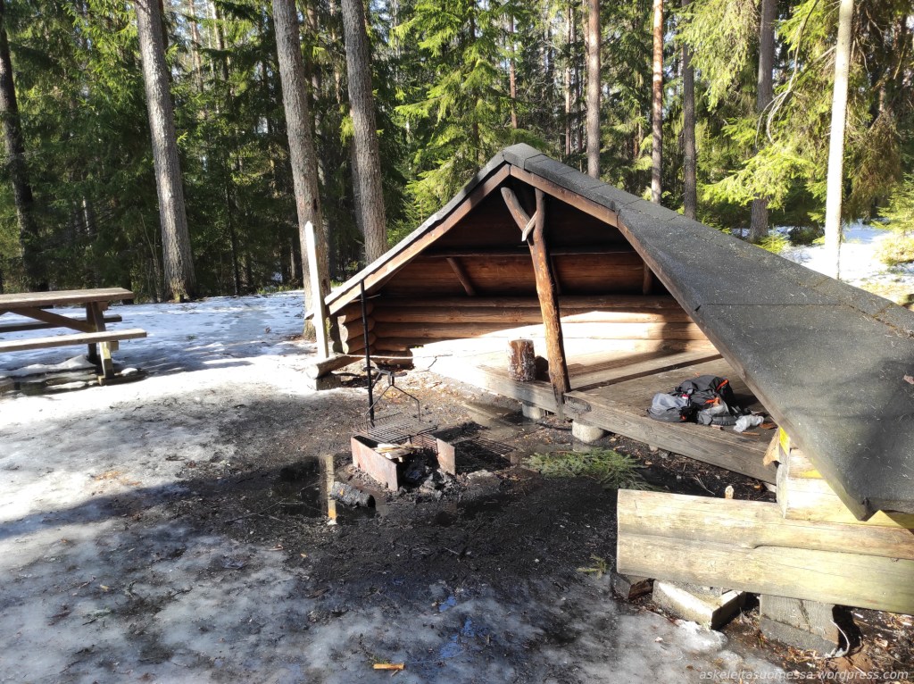Vahterjärveltä löytyy laavu ja nuotiopaikka. Tämä näytti olevan suosittu telttailupaikka!