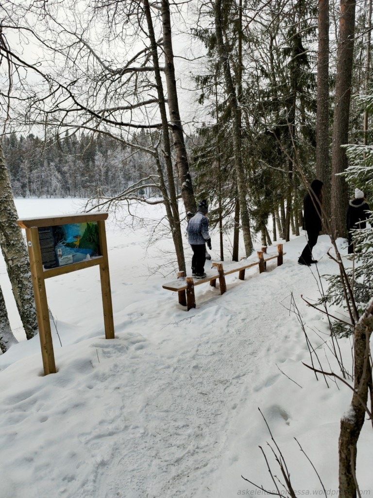 Reitin pituus: Monenlaisia rengasreittivaihtoehtoja. Esimerkiksi Hevosenlenkki on 6 km pituinen reitti, jonka mies kiersi tällä kertaa lasten kanssa, mutta itse kuljin Savottapolun (10 km) ja Jätkän polun (11 km), jolloin nämä kaksi yhdistettynä reitin pituus oli n. 20 km. Kannuslahden esteetön janareitti on puoli kilometriä per suunta. Katso tarkemmin pdf-esite.