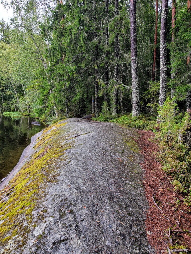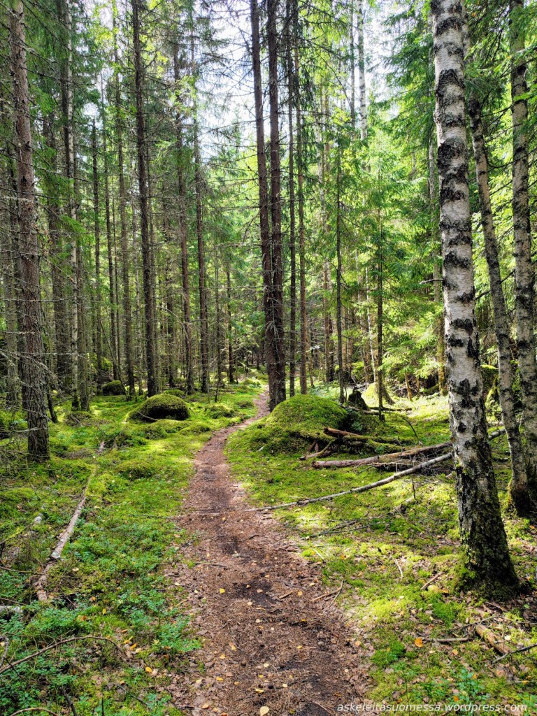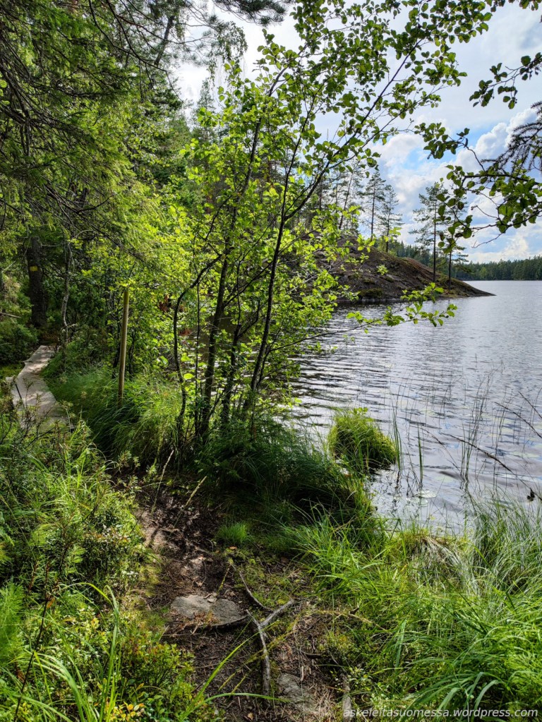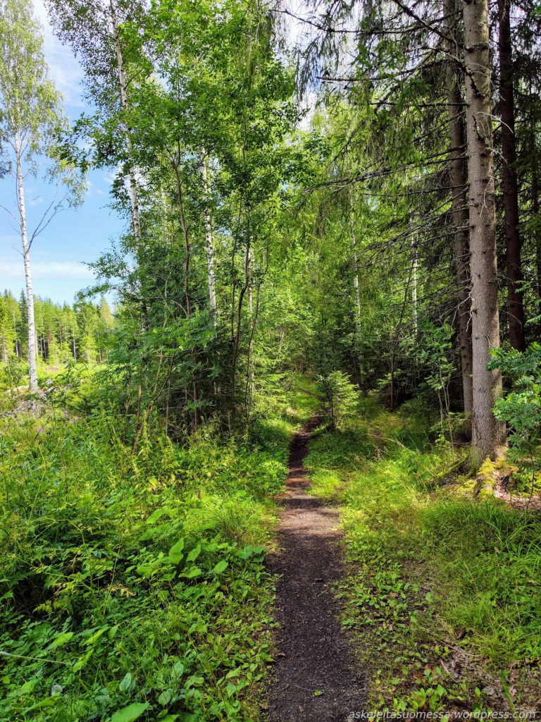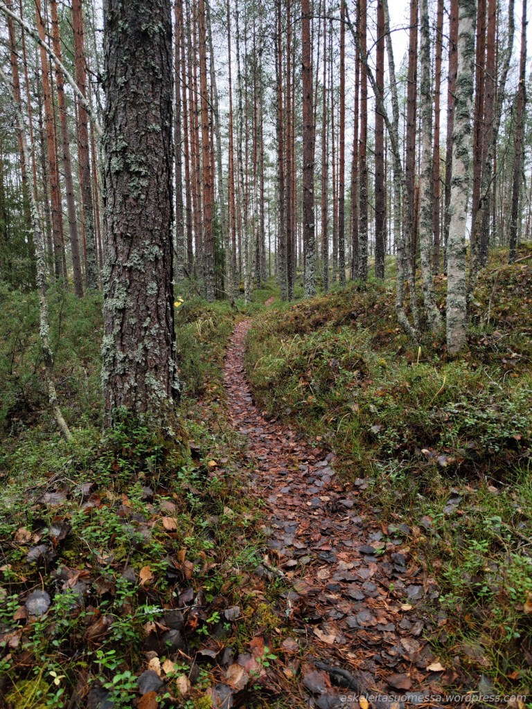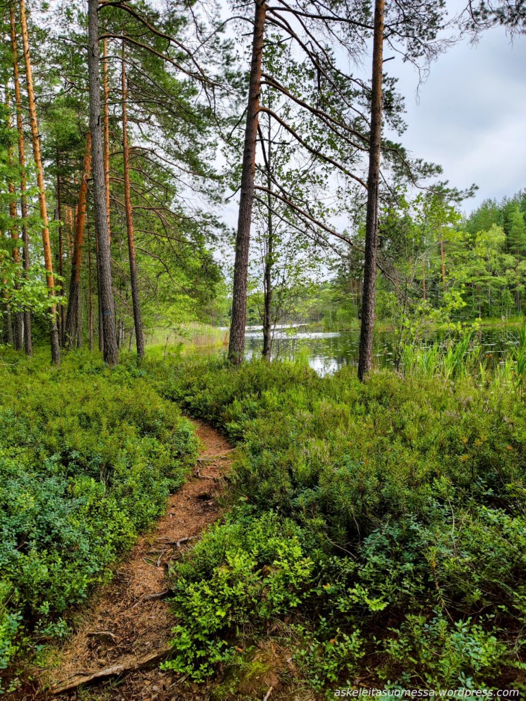 Vaikeus: Yleisesti ottaen helpohkoja metsäpolkuja, mutta toki jotkut polut ovat erittäin kivikkoisia ja suoalueilla ei mene pitkospuita eli vedenkestävät kengät olivat pakollinen varuste näin kesäaikaankin.
