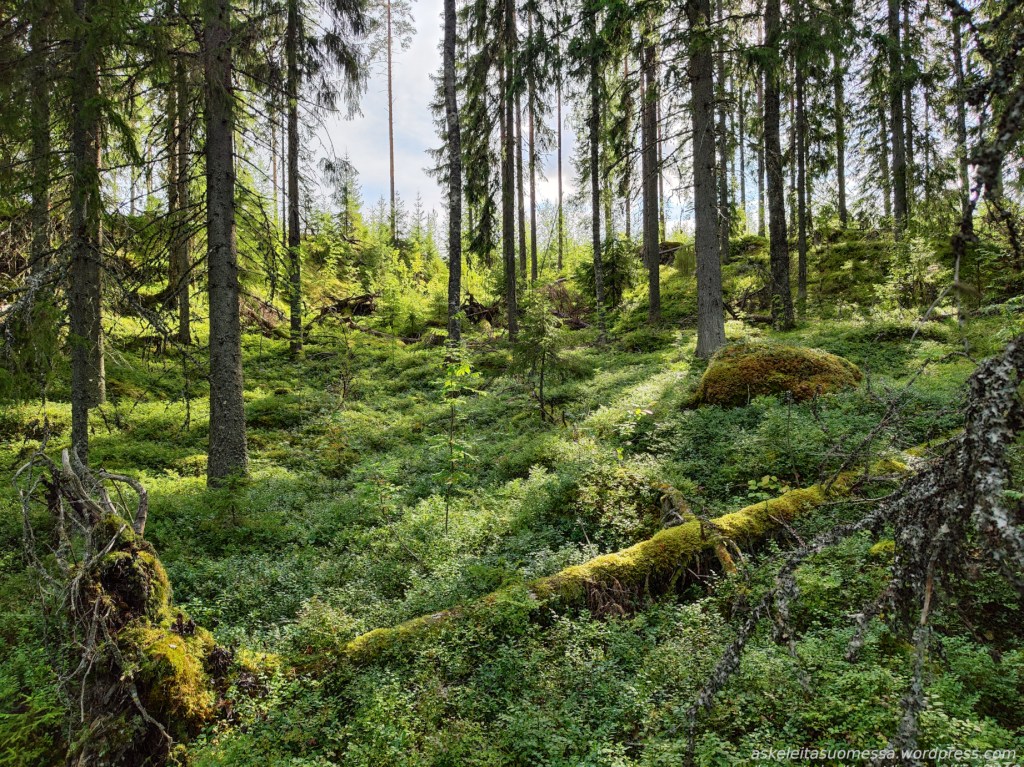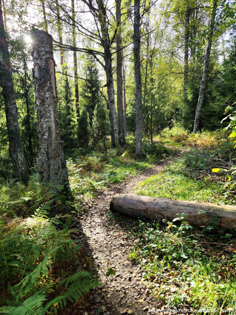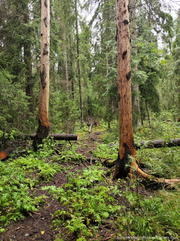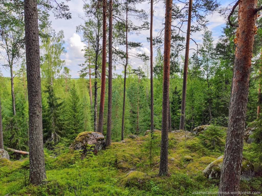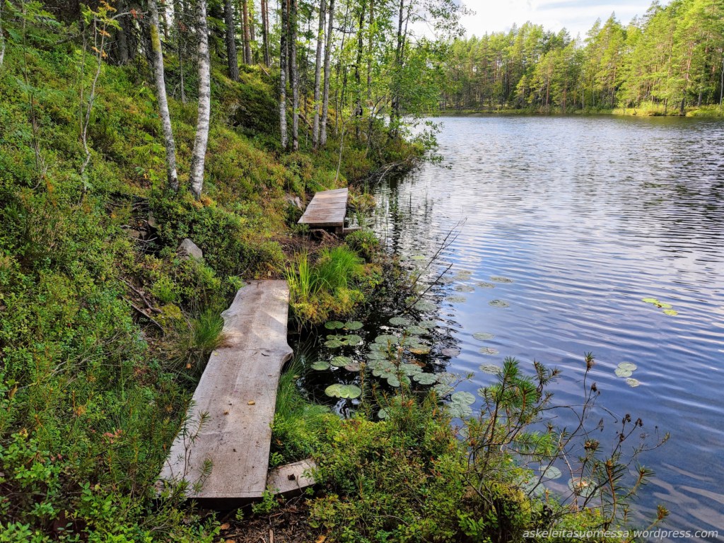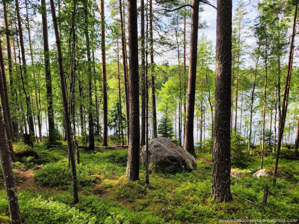 Vaikeus: Yleisesti ottaen helpohkoja metsäpolkuja, mutta toki jotkut polut ovat erittäin kivikkoisia ja suoalueilla ei mene pitkospuita eli vedenkestävät kengät olivat pakollinen varuste näin kesäaikaankin.