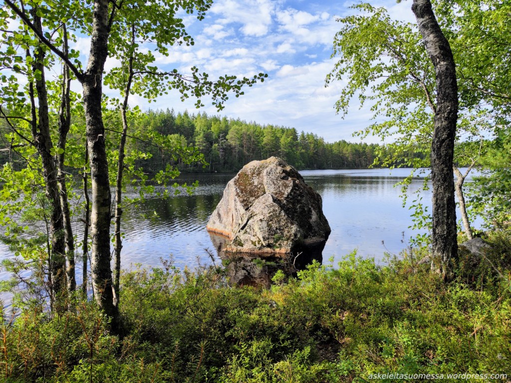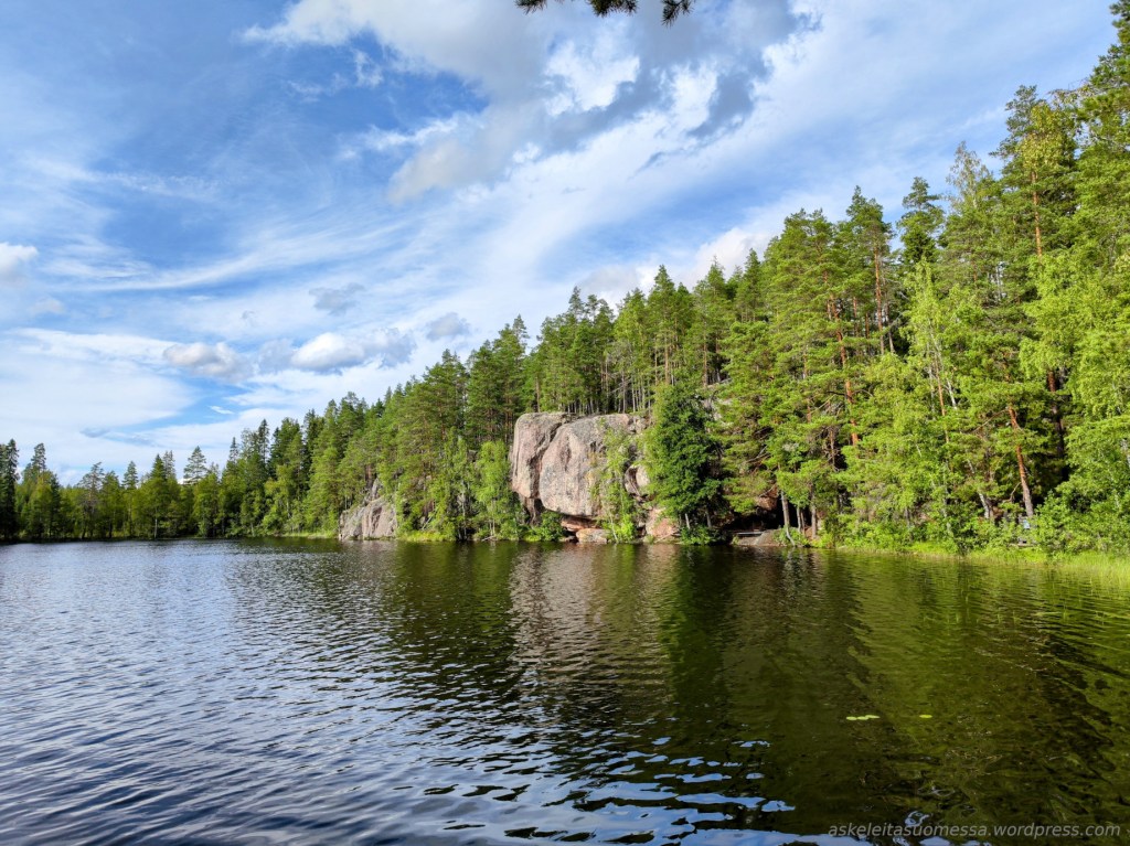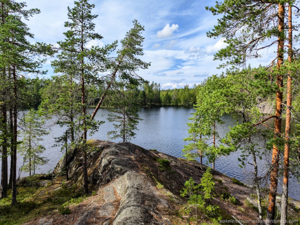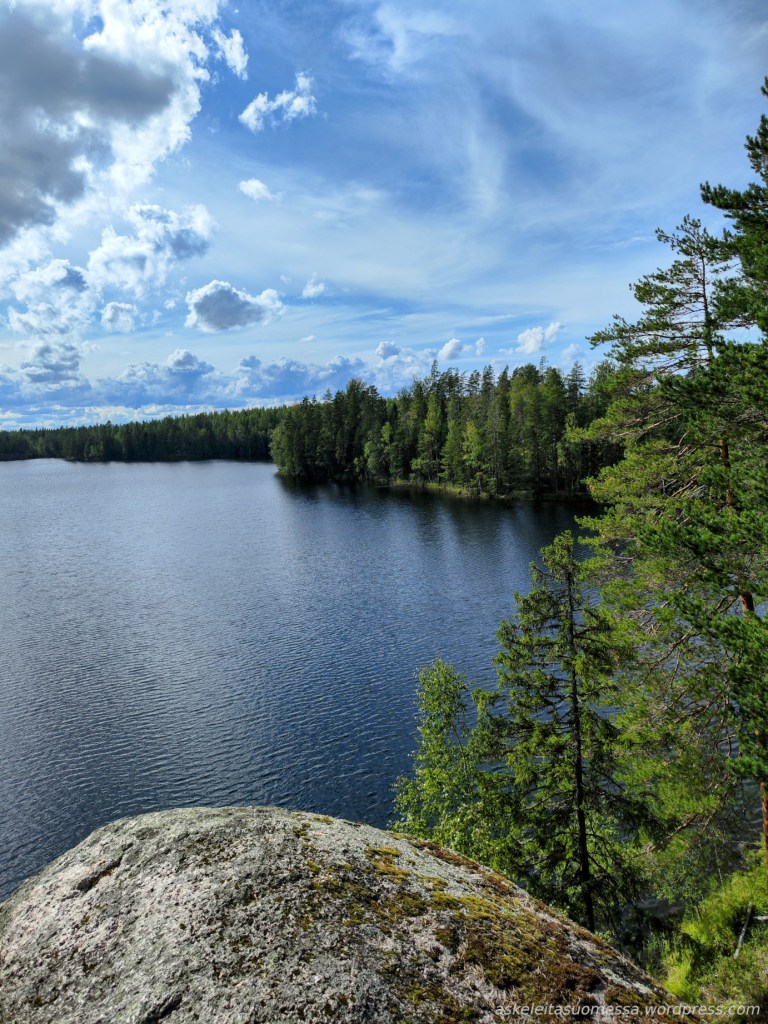 Reitti kulkee upeissa järvimaisemissa. Iso Vuorijärven rantojen kallioilla on ihanaa istua auringossa ja katsella maisemaa.