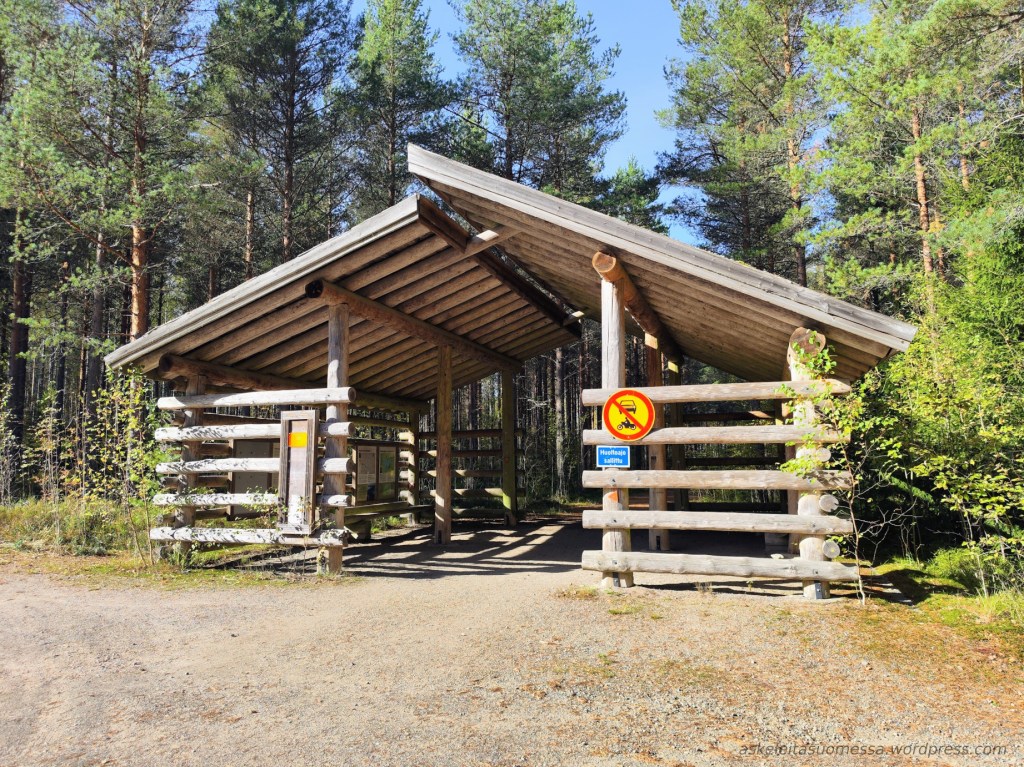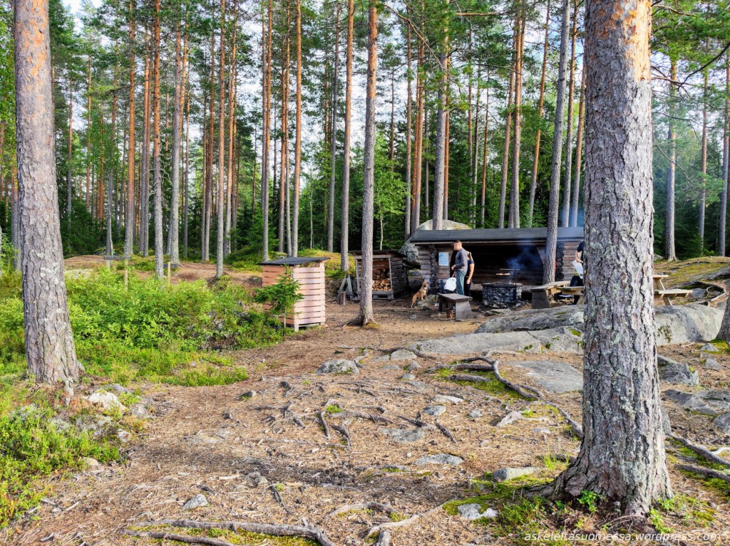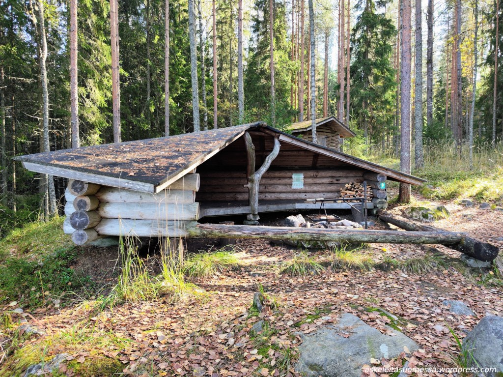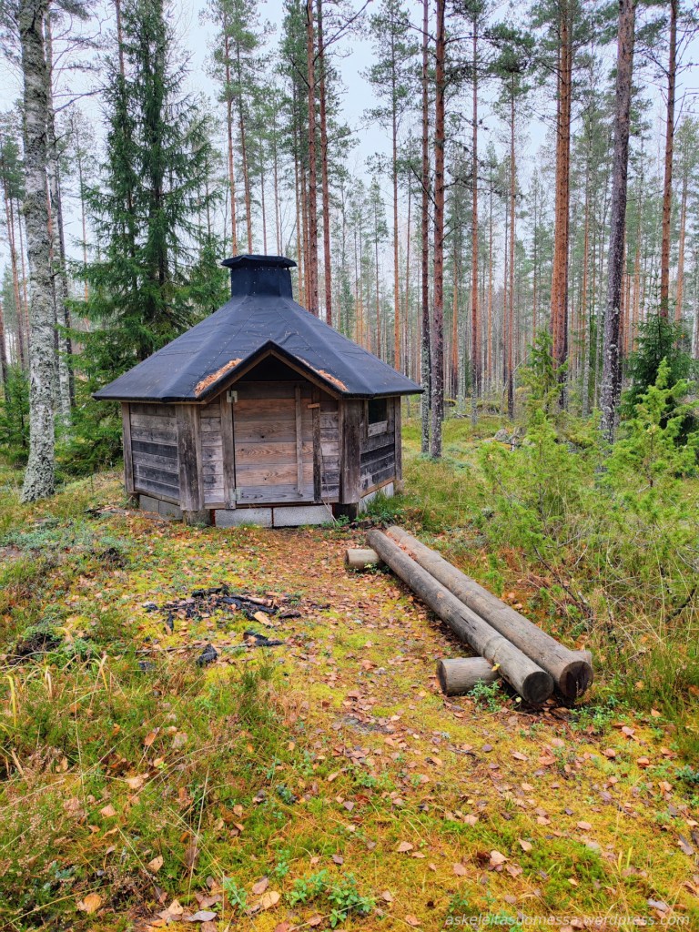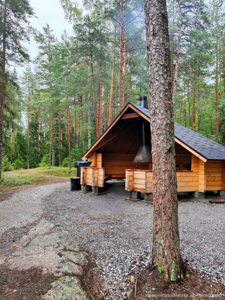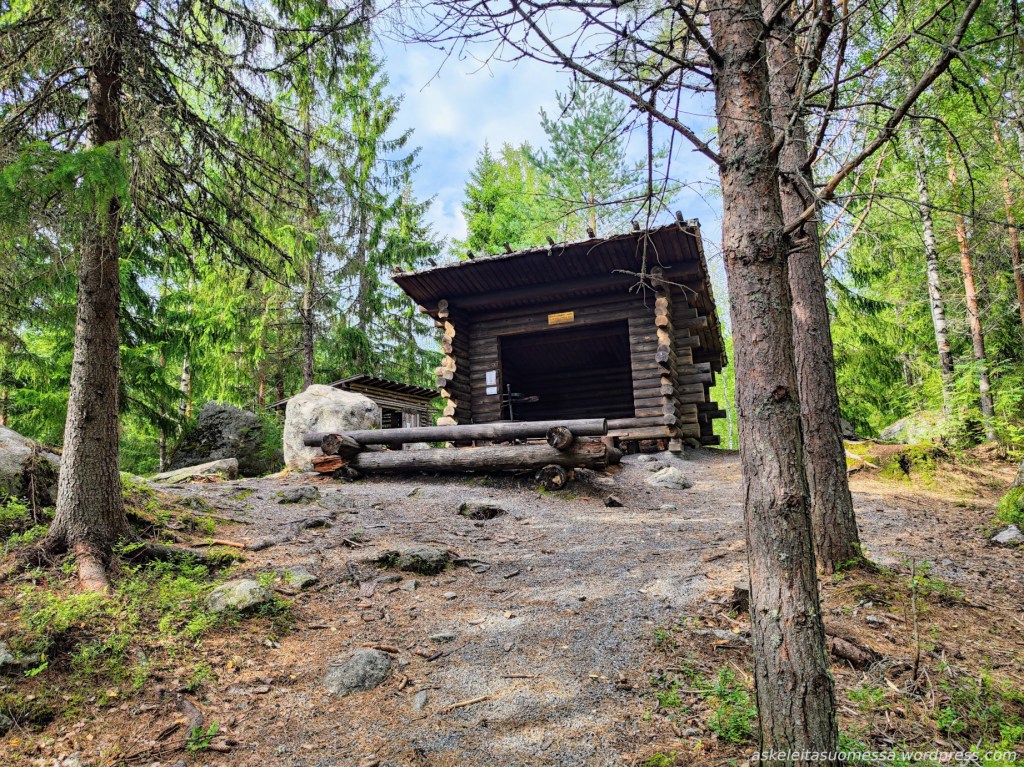 Jos reitin kiertää myötäpäivään, aivan loppuvaiheessa on kota. (Puuvarastoa en huomannut olevan, joten omat puut täytynee mukaan ottaa, jos nuotion haluaa tehdä.)
