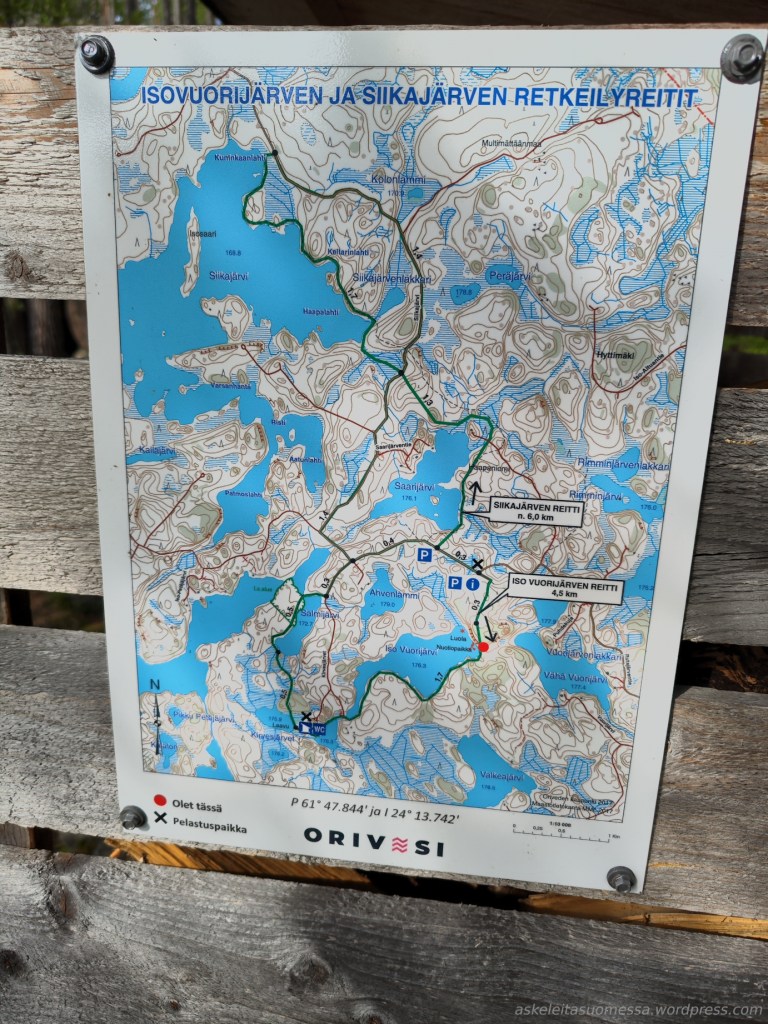 Reitin pituus: Noin 4,5 km (rengasreitti). Reittiin voi yhdistää myös 6 km:n pituisen Siikajärven reitin, mutta me emme nyt lasten kanssa sitä lähteneet kiertämään eli siitä ei ole tässä merkinnässä kuvia tai tietoa. Alempana karttakuva, joka löytyy myös netistä pdf:nä.