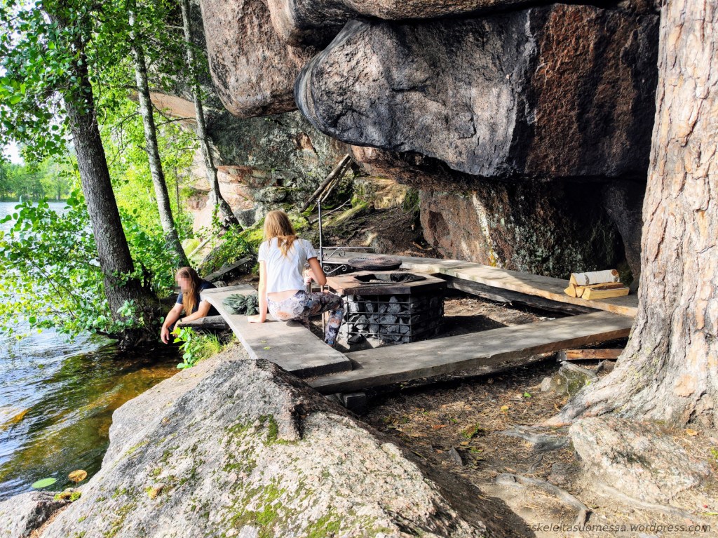 Reitin erikoisuus on riippukivikallio ja sen luola. Nuotiopaikka on rakennettu siis kalliokiven alle. Polttopuita oli ainakin nyt.