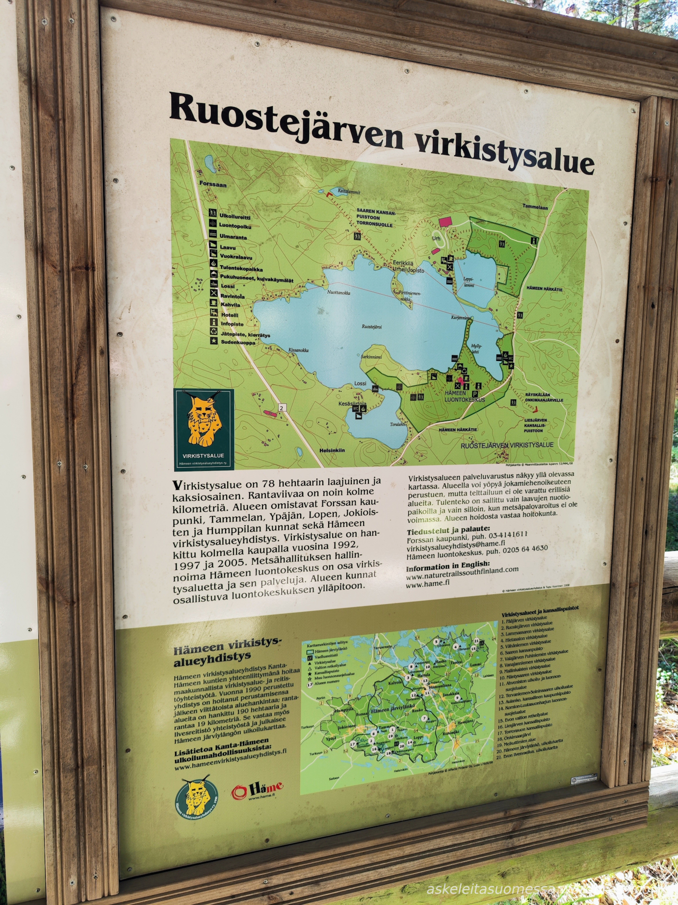 Reitin pituus: Yhteensä reitin pituus on noin 5 km (aluksi on janareittipätkä ennen kolmen kilometrin kierroksen alkamista). Netistä luontoon.fi:stä löytyy pdf-kartta.