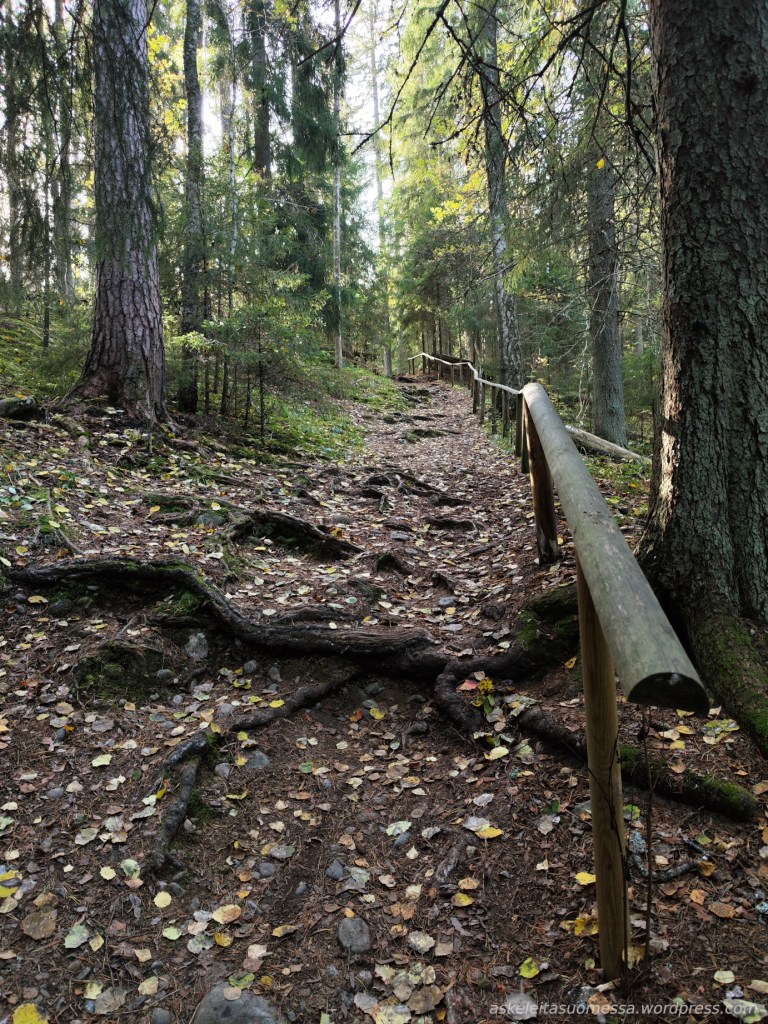 Vaikeus: Reitti on helpohko: metsäpolkua, leveämpää sorapolkua ja pitkospuita. Korkeuseroja on vain vähän. Kävimme täällä 10.11.24 ja silloin reitti oli melko mutainen, mutta goretex-lenkkareilla pärjäsi hyvin.