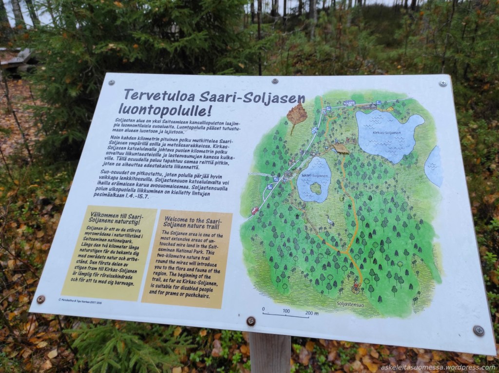 Sijainti: Teijon kansallispuistossa on useita parkkipaikkoja. Me käytimme Sahajärven kierrokselle lähtiessä Laviakallion pysäköintialuetta (Sauruntie 910, Salo) ja Matildanjärven kierrokselle lähtiessä Matildanjärventien päässä olevaa parkkipaikkaa.