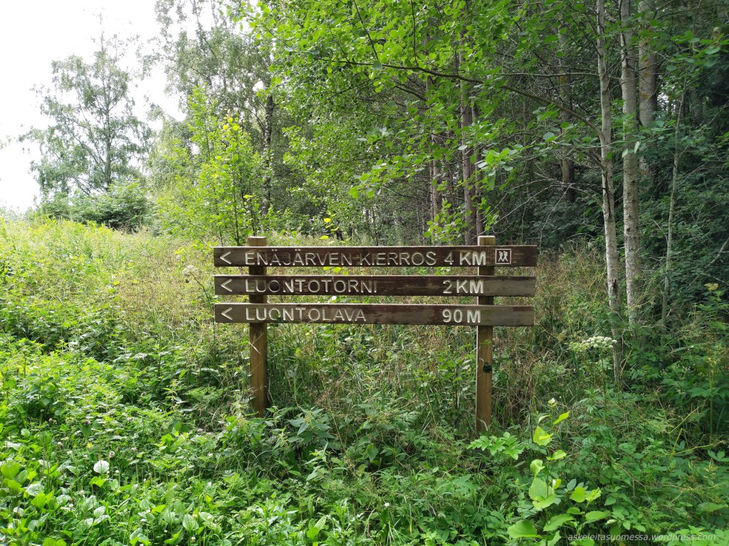 Me olemme kulkeneet koko reitin ongelmitta 3-vuotiaan kanssa, mutta jos haluaa tehdä lyhyen reitin esim. pelkälle luontotornille, auton voi jättää Enäjärvenranta-nimiselle tielle (tornille on siitä lyhyt matka). Jos taas haluaa käydä luontolavalla – näkyy aiemmassa kuvassa – Enäjärventieltä on siihen lyhyt matka.