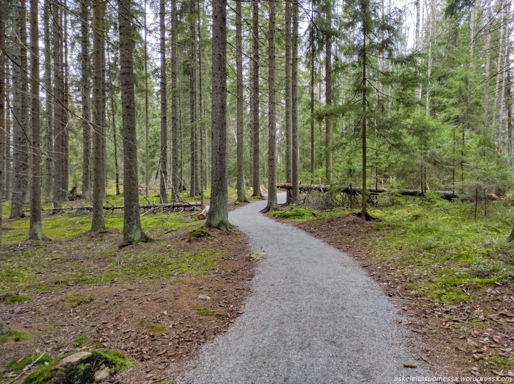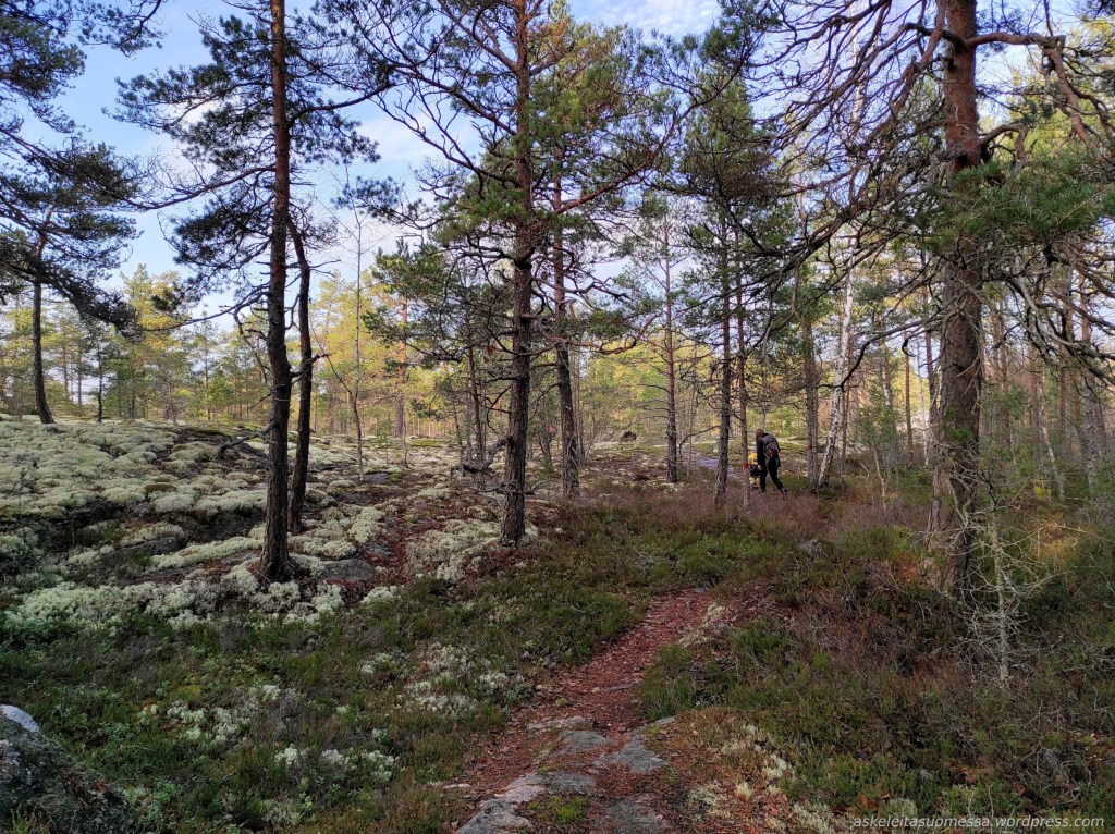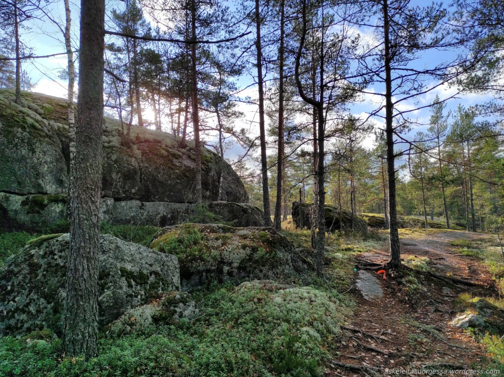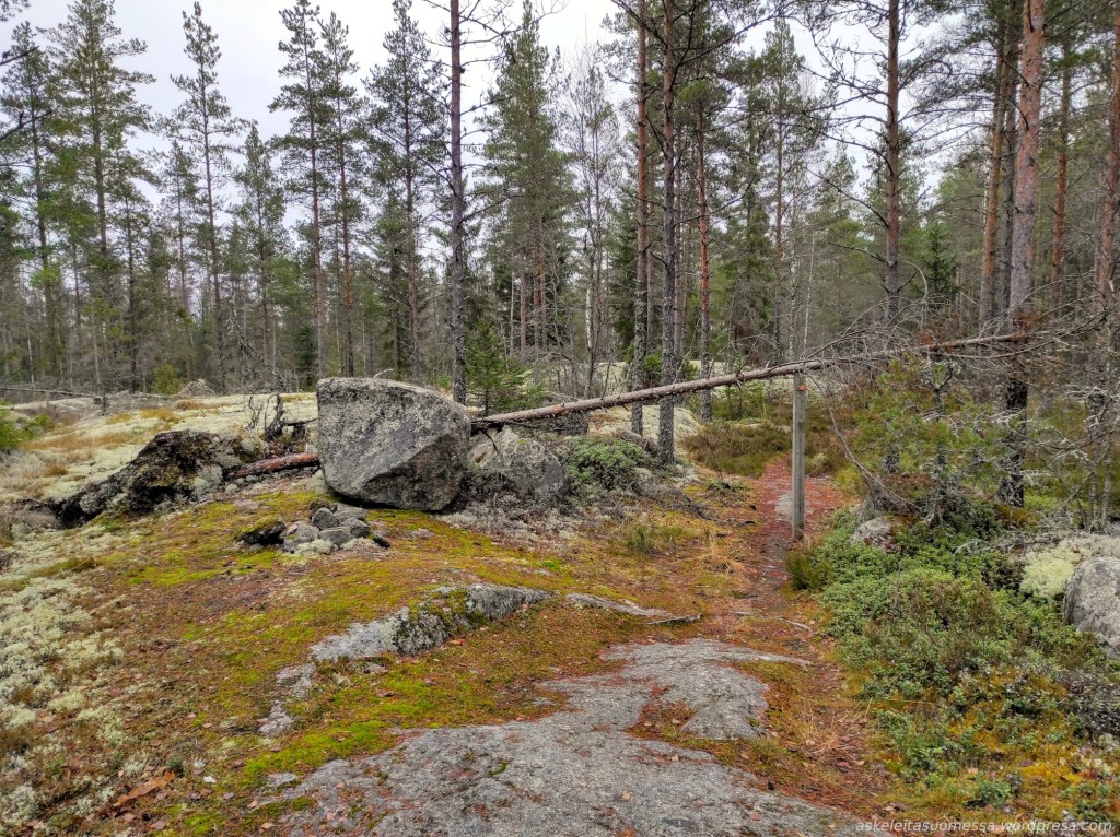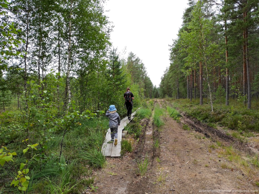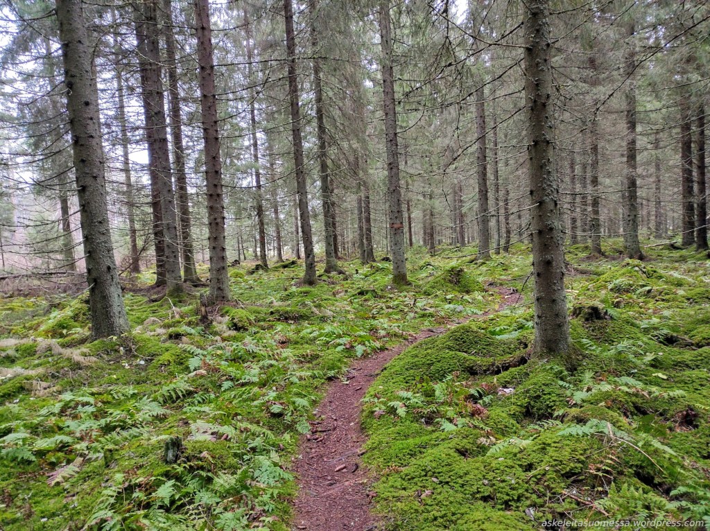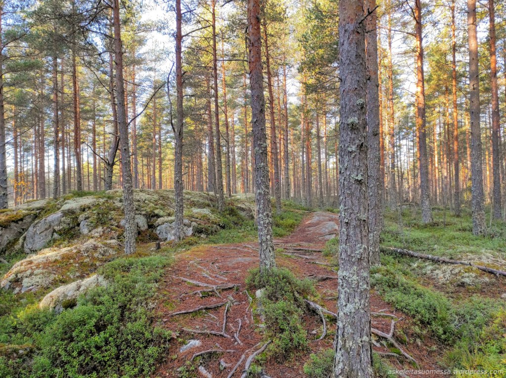 Vaikeus: Yleisesti ottaen helpohkoja metsäpolkuja, mutta toki jotkut polut ovat erittäin kivikkoisia ja suoalueilla ei mene pitkospuita eli vedenkestävät kengät olivat pakollinen varuste näin kesäaikaankin.