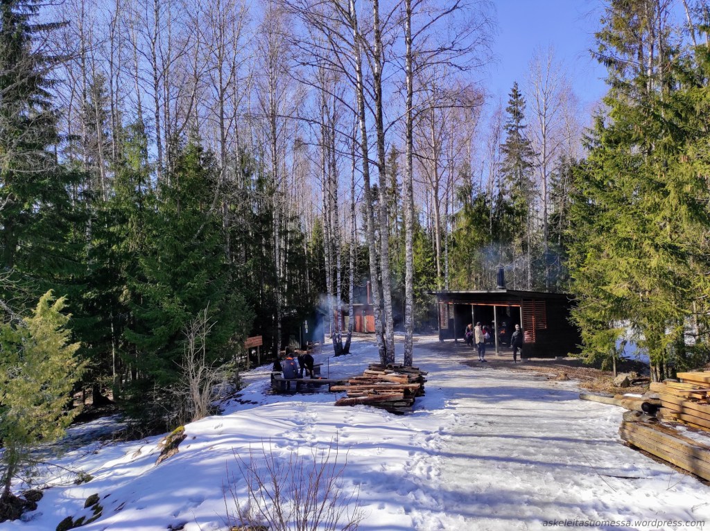 Reitin varrella on nuotiopaikka, polttopuita näytti olevan.