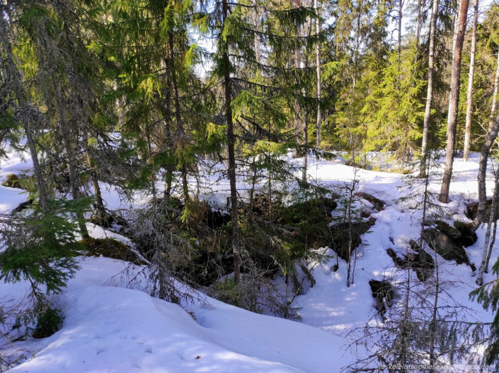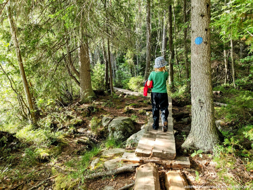 Vaikeus: Helpohko/keskivaikea reitti, jolla metsäpolkuja ja pitkospuita. Ei kovin isoja korkeuseroja, mutta kallioilla on toki pienten lasten kanssa oltava varovaisia putoamisvaaran vuoksi.