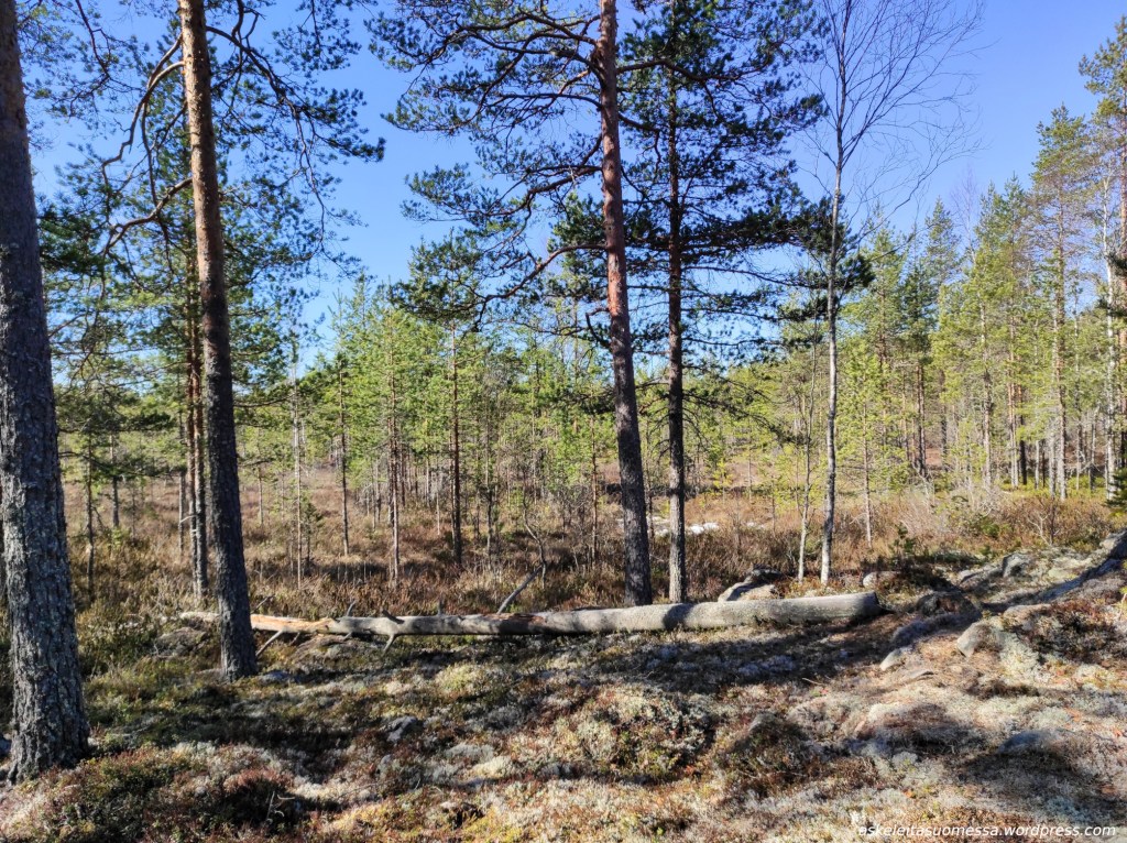 Iso Vuorijärven jälkeen reitti jatkuu kohti Kirvesjärviä. Tällä osuudella on suomaastoa.