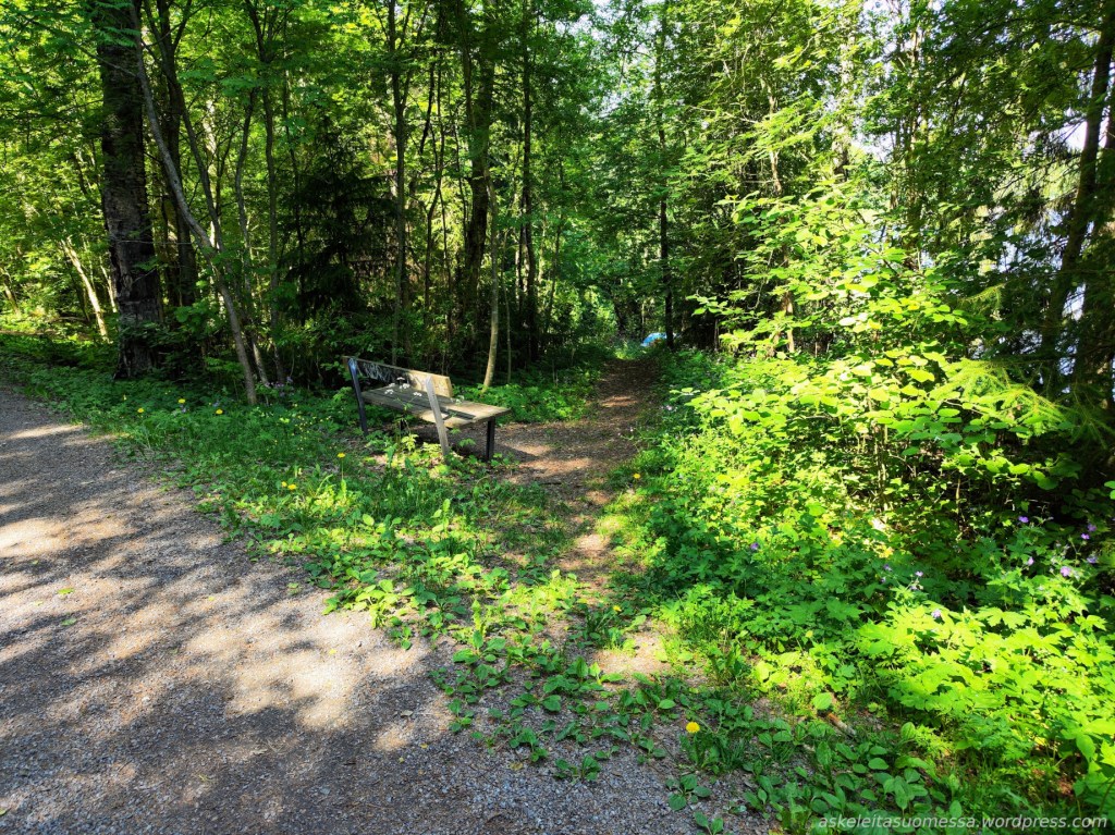 Me kävimme ensin tutustumassa Metsämuseon nähtävyyksiin, minkä vuoksi lähdimme kiertämään luontopolkua myötäpäivään nuotiopaikan vierestä, mutta suoraan parkkipaikalta pääsee siis kiertämään reittiä toiseen suuntaan.