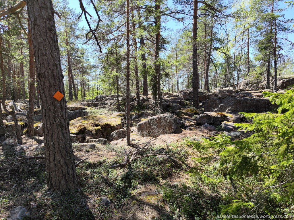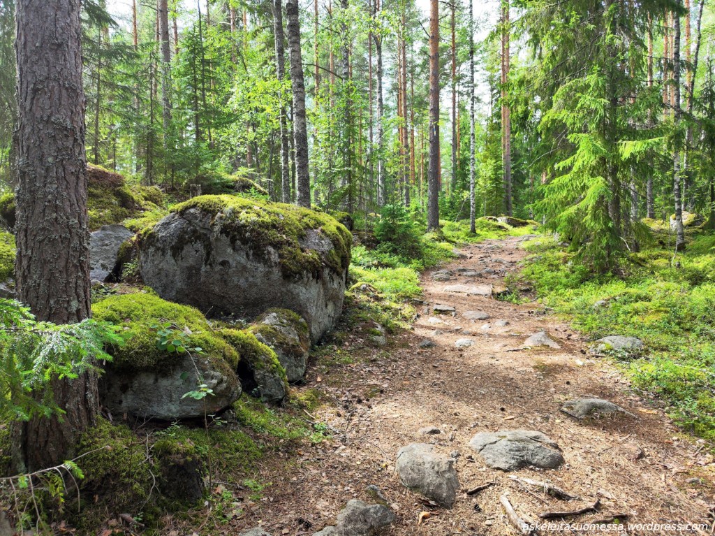 Vaikeus: Melko helppoa (osittain kivikkoista) metsäpolkua, suolla pitkospuut. Korkeuseroja.