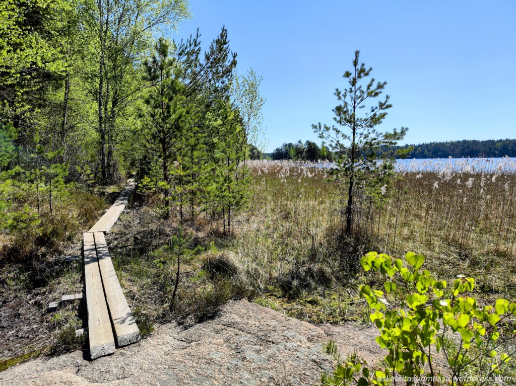 Jos etsit reittiä, jolla saat kävellä pitkän matkan suolla pitkospuilla, on tämä oikein hyvä valinta!