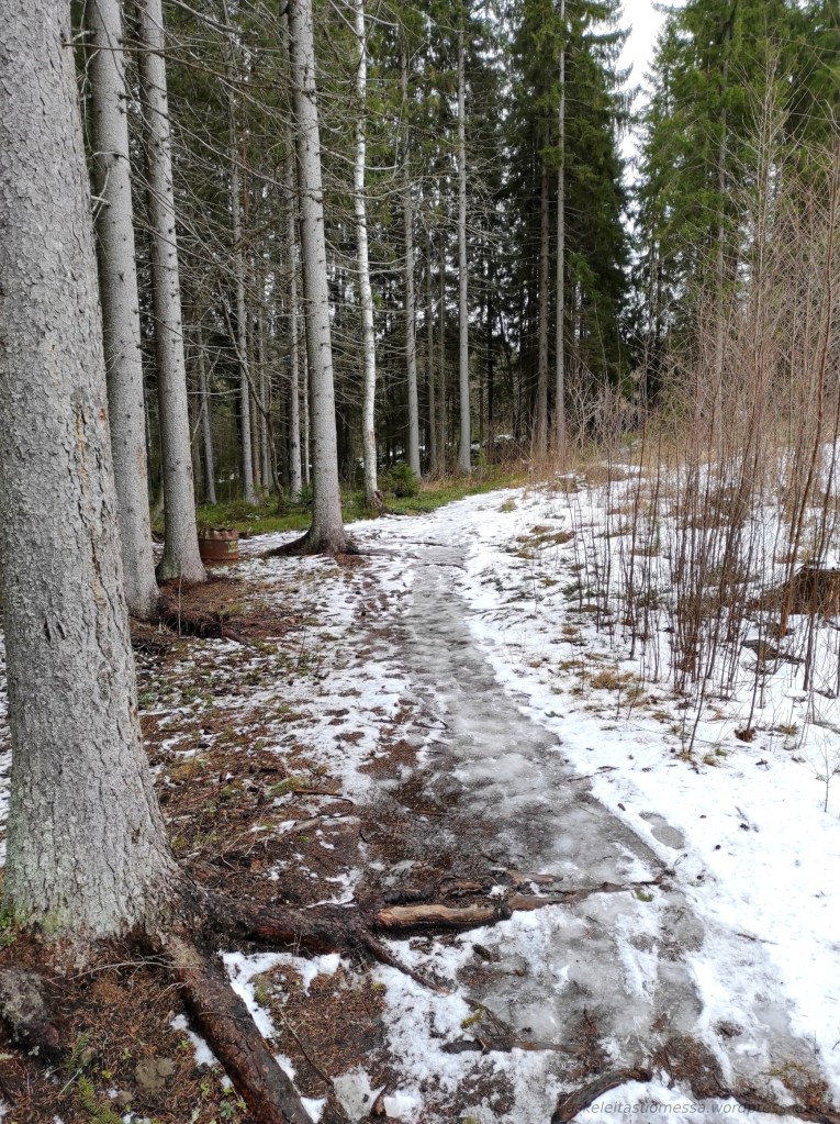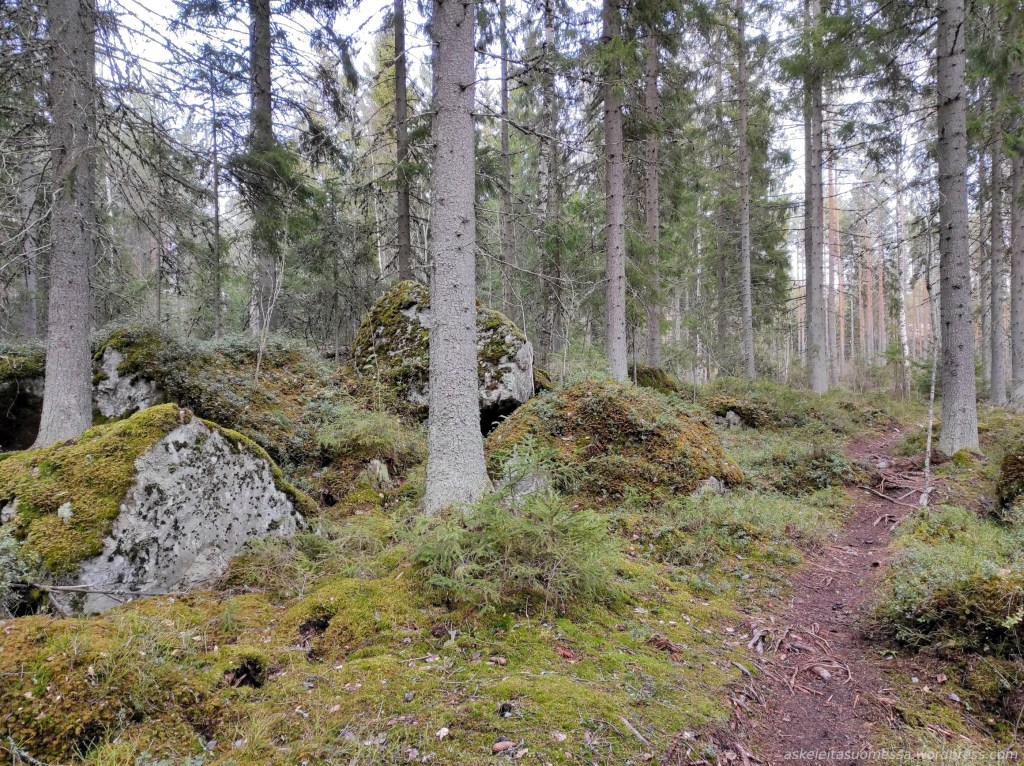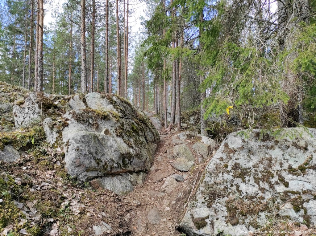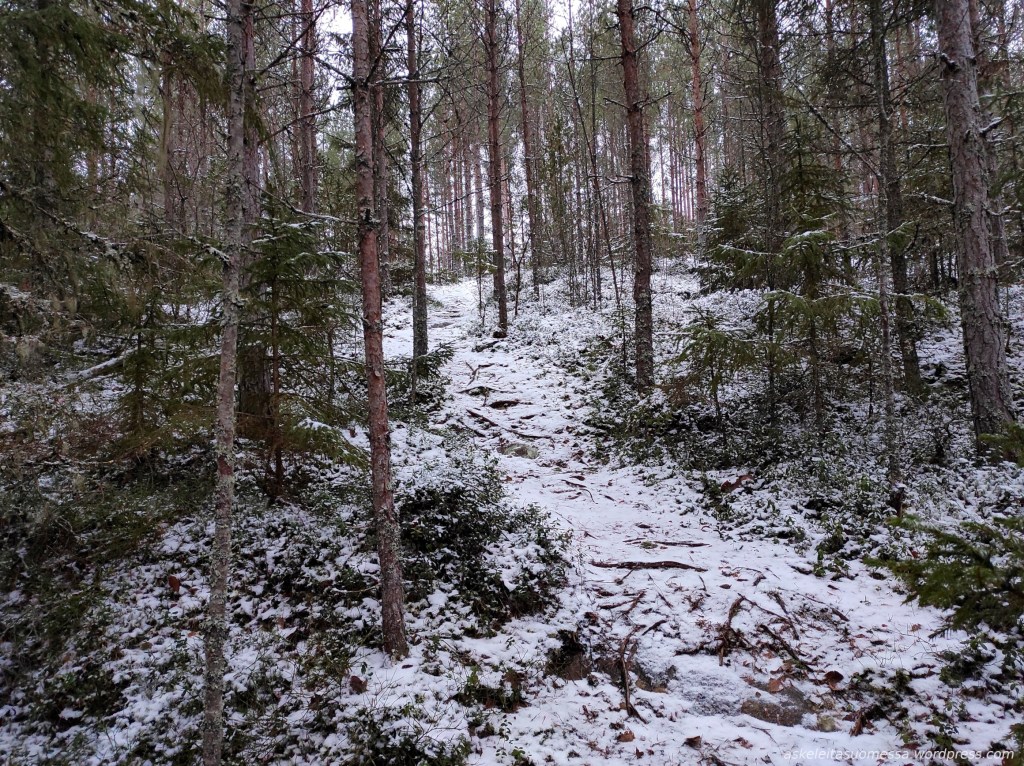 Tälle polulle pääsee esimerkiksi Isojoenrannantieltä kääntyvän nimettömän tien päästä.