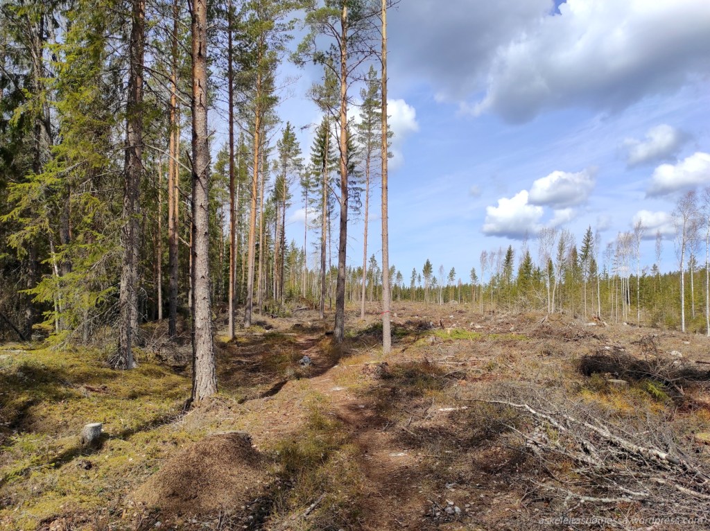 Pian rataosuus muuttuu leveämmäksi. Tällä hetkellä (v. 2025) Laituritien viereisellä osuudella on yhdessä kohtaa suuret hakkuupuupinot, mutta niiden takaa rataa pitkin pääsee siis edelleen kulkemaan.