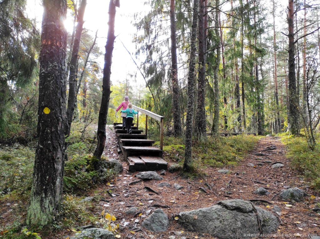 Tämä alue sopii oikein hyvin kohteeksi myös lapsiperheille. Maasto on helppoa, reitit eivät ole kovin pitkiä ja täältä löytyy metsäpolkujen lisäksi mm. uimaranta, köysilossi ja iso silta.