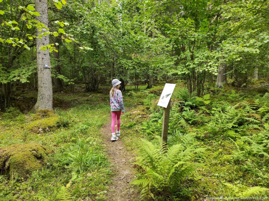 Viikinsaaren toinen puolisko on luonnonsuojelualuetta ja siellä kulkee lyhyehkö luontopolku, joka sopii oikein hyvin pikkulasten kanssa retkeileville. Luontopolun varrella on kylttejä, joissa esitellään saaren luontoa ja joissa on aina myös jonkinlainen tehtävä lapsille (esim. ”Jatka matkaa liihotellen kuin kotka.”). Luontopolun varrella on myös mukavia meditaatio-ohjeita, jos mieluummin haluaa sellaisia tehdä. 🙂