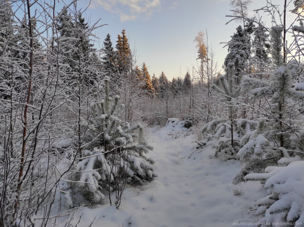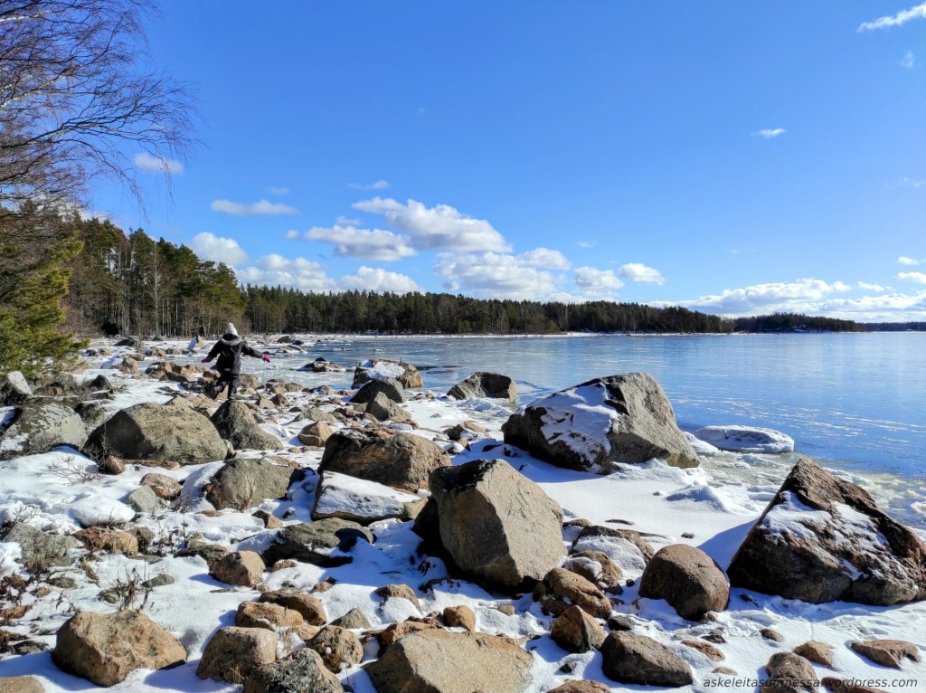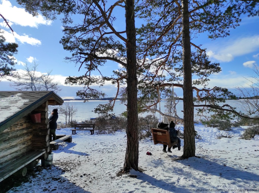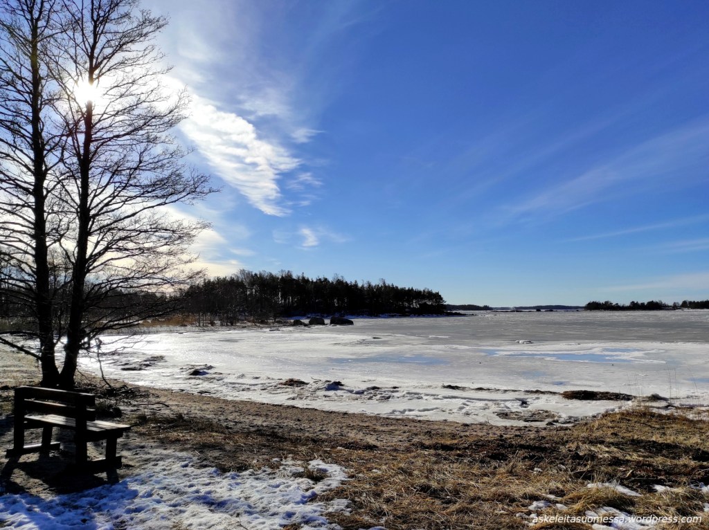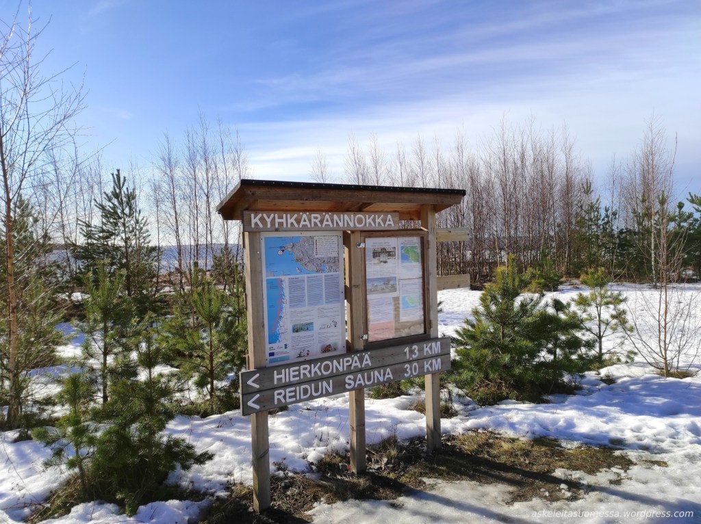 Me lähdimme lasten kanssa liikkeelle Reidun saunan parkkipaikalta ja kävimme Kyhkärännokassa asti – kauniissa kevättalven säässä oli paljon upeita maisemia katseltavana. 🙂