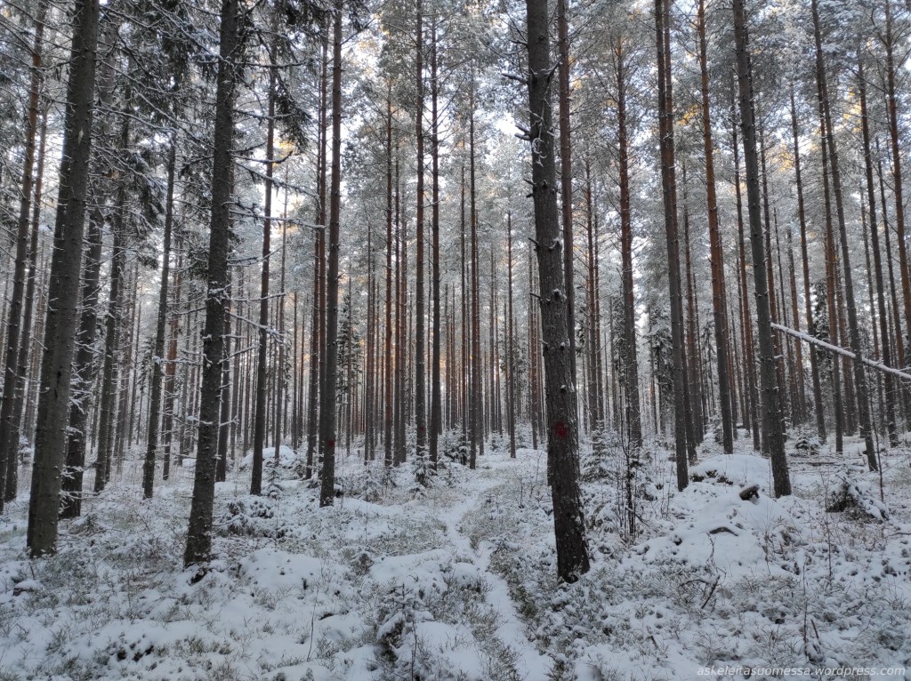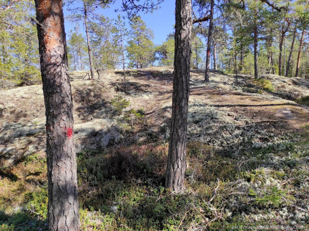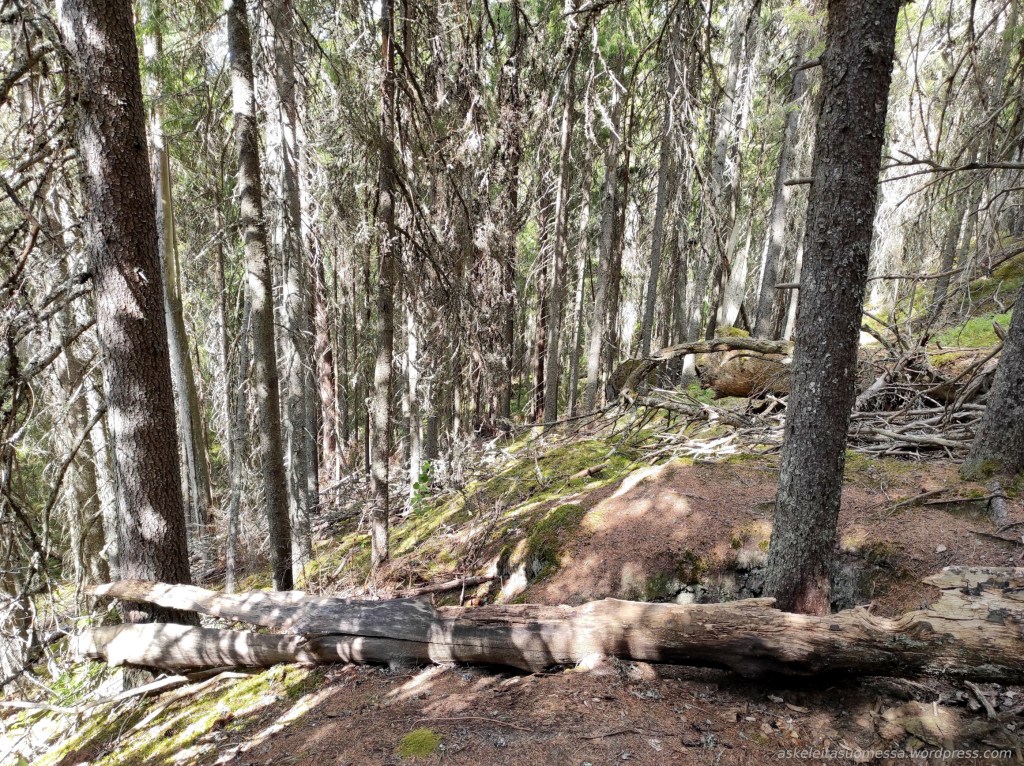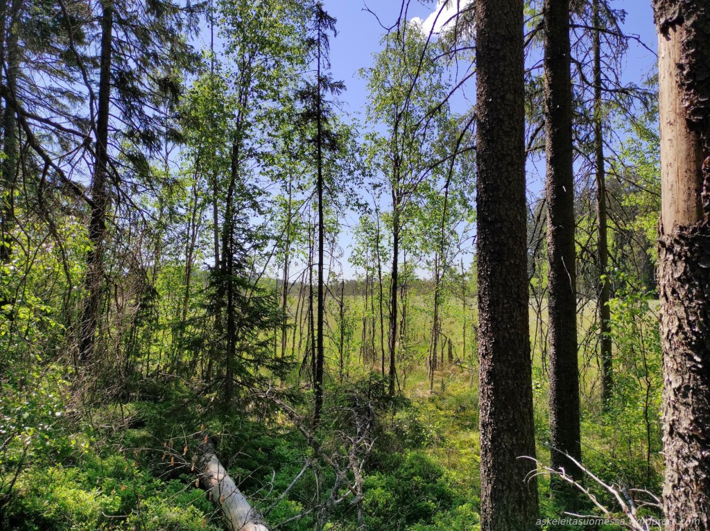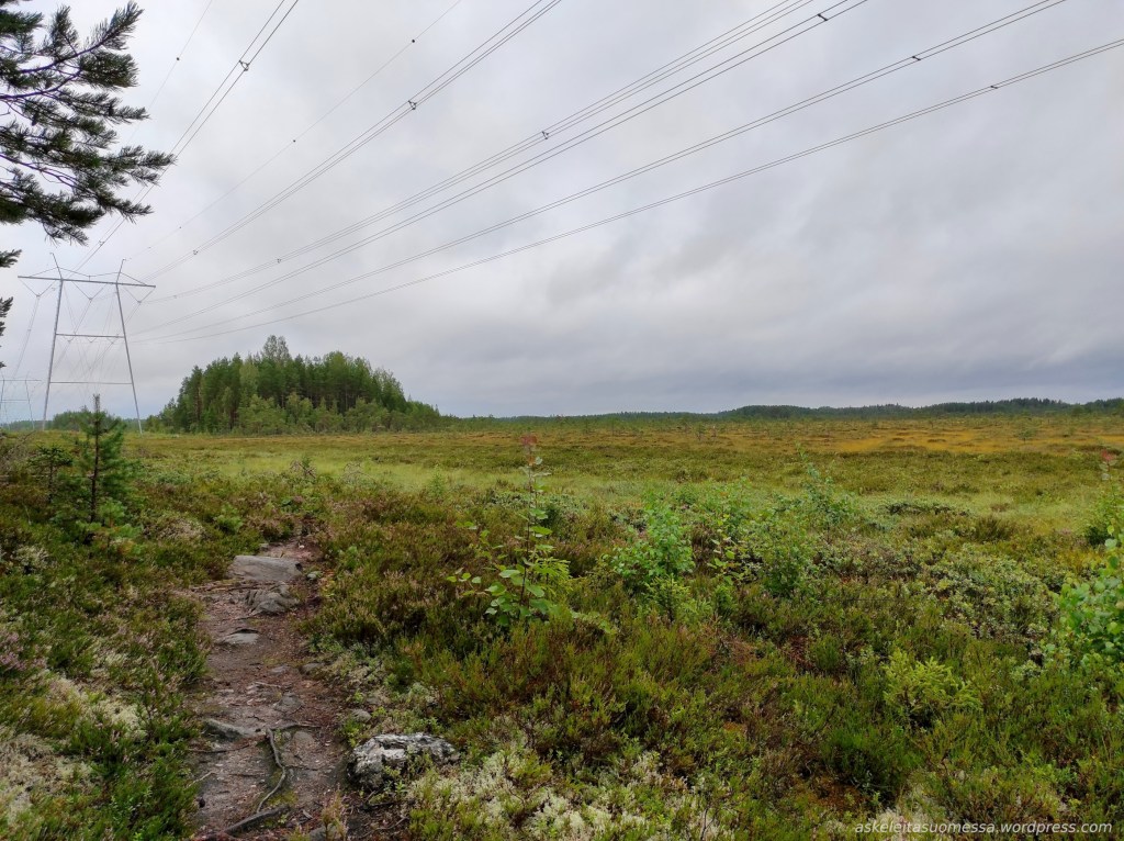 Seuraavat kuvat ovat väliltä Katajamäen laavu – Saloniementie. Polku oli kesällä selvästi näkyvissä, mutta reittimerkit melko kuluneet.