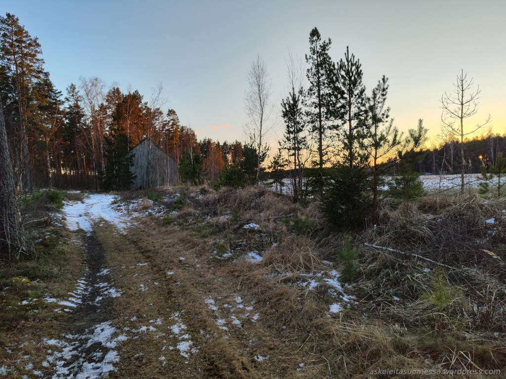 Jos reitin kiertää myötäpäivään, aivan loppuvaiheessa on kota. (Puuvarastoa en huomannut olevan, joten omat puut täytynee mukaan ottaa, jos nuotion haluaa tehdä.)