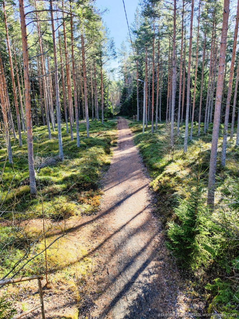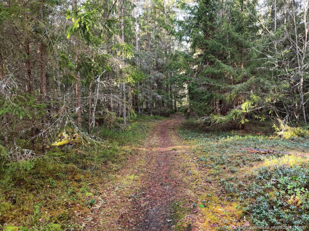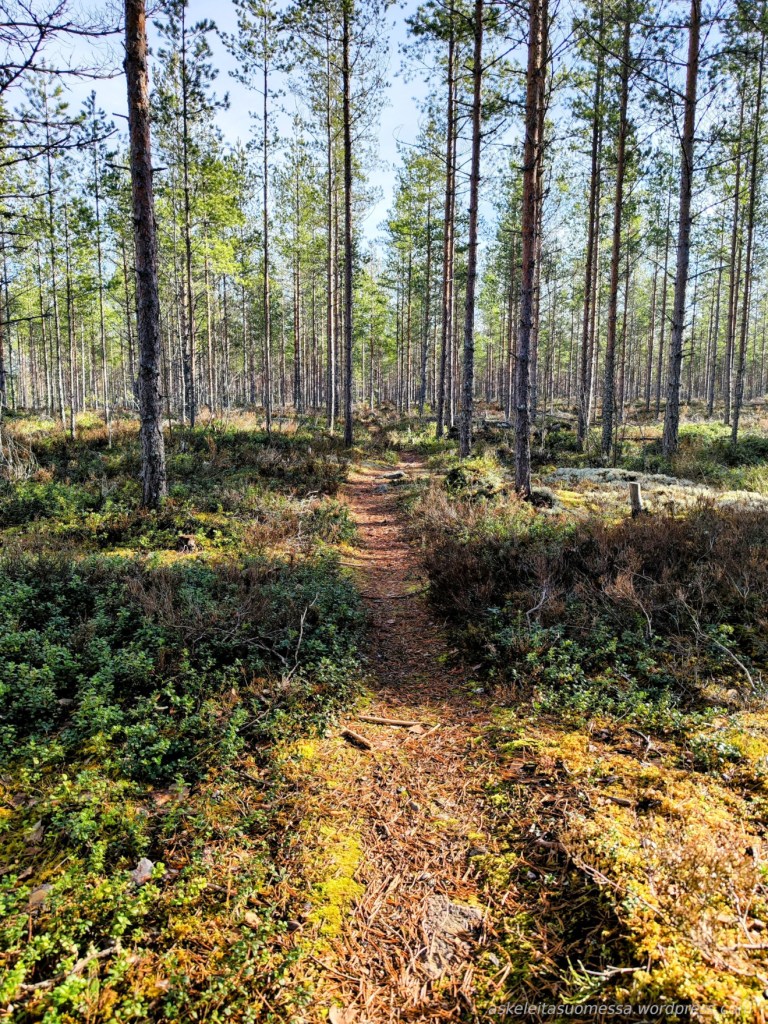 Vaikeus: Helppokulkuinen. Suurimmaksi osaksi reitti on autoteitä/metsäteitä, mutta lisäksi pari lyhyehköä metsäpolkupätkää.