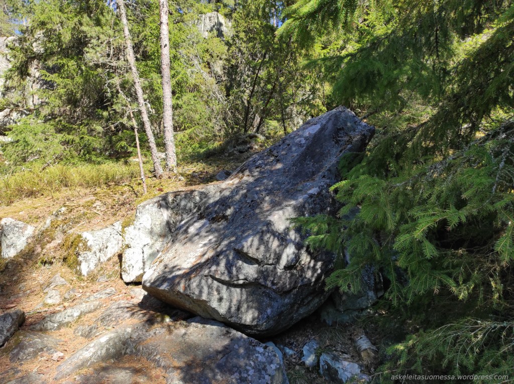 Vaikeus: Melko helppoa (osittain kivikkoista) metsäpolkua, suolla pitkospuut. Korkeuseroja.