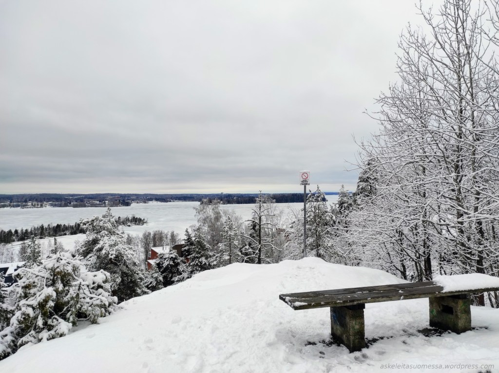 Näköala näin pilvisenä talvipäivänä ei ollut kaunein, mutta helposti voi kuvitella, kuinka hienoa täällä kesäaikaan on. 🙂
