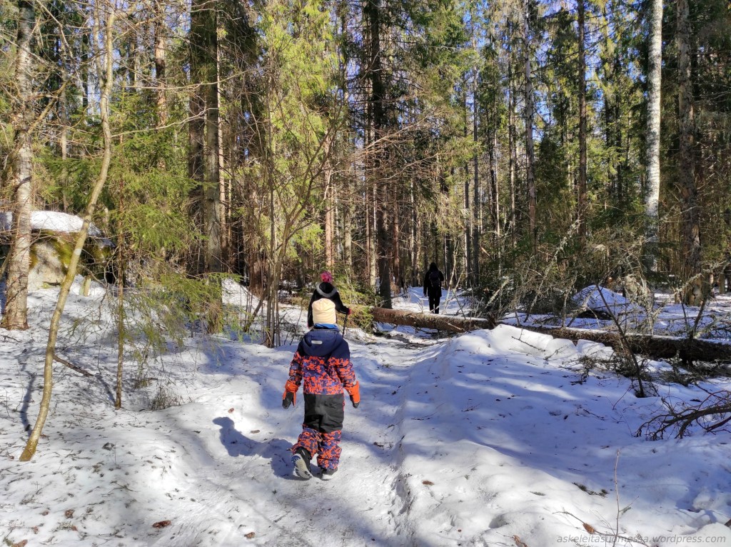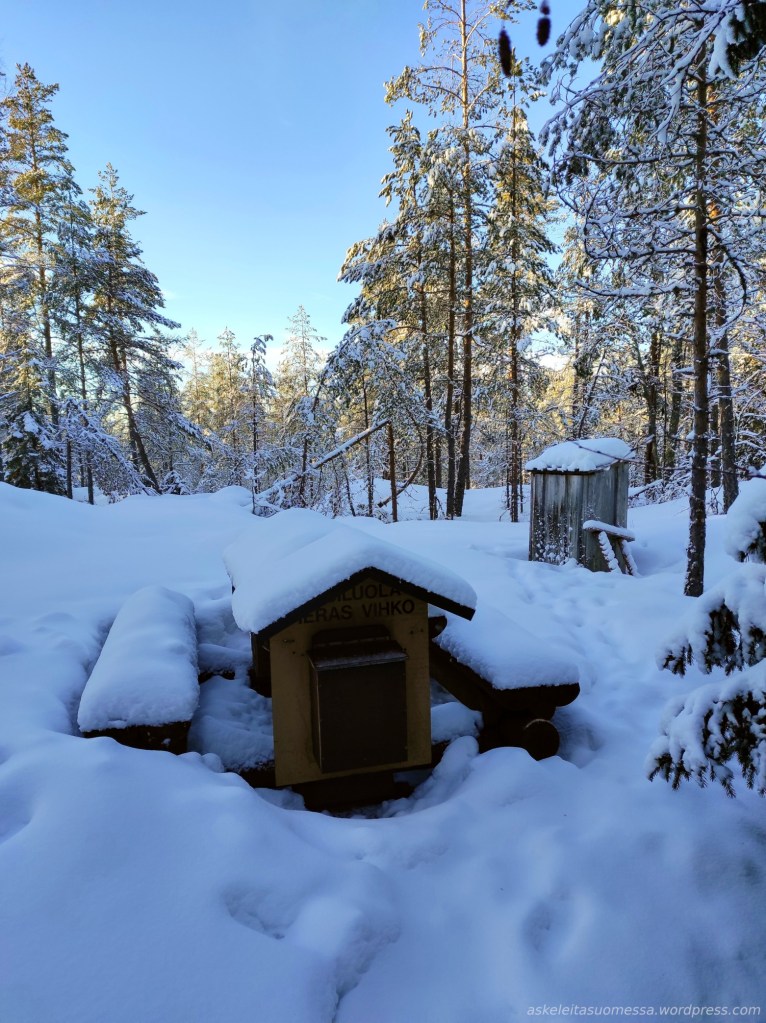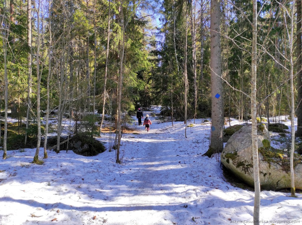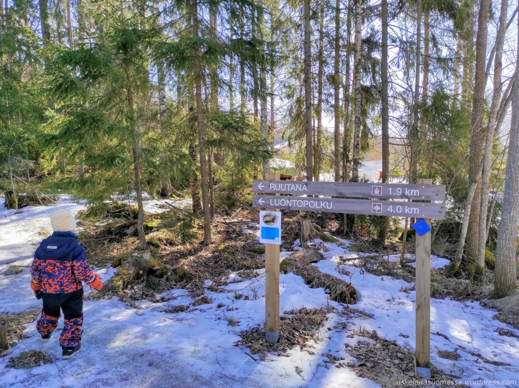 Reitin pituus: Monenlaisia rengasreittivaihtoehtoja. Esimerkiksi Hevosenlenkki on 6 km pituinen reitti, jonka mies kiersi tällä kertaa lasten kanssa, mutta itse kuljin Savottapolun (10 km) ja Jätkän polun (11 km), jolloin nämä kaksi yhdistettynä reitin pituus oli n. 20 km. Kannuslahden esteetön janareitti on puoli kilometriä per suunta. Katso tarkemmin pdf-esite.